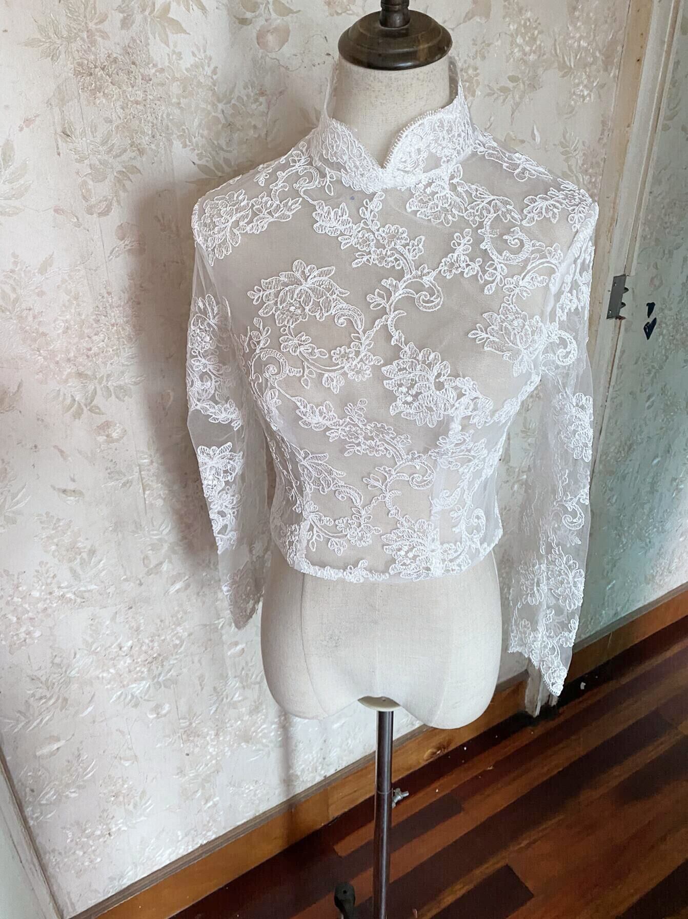 ウエディングドレス ボレロ ハイネック 3D立体レース刺繍 花嫁/ウェディングドレス/ブライズメイド/結婚式/披露宴