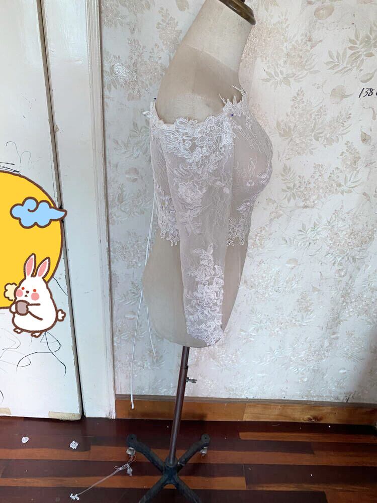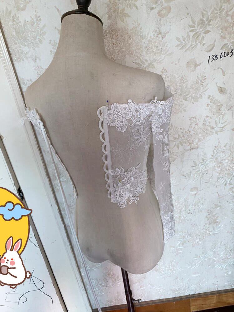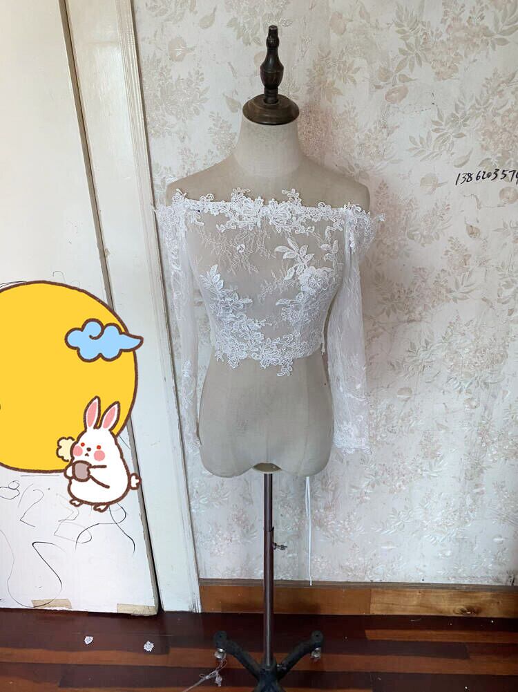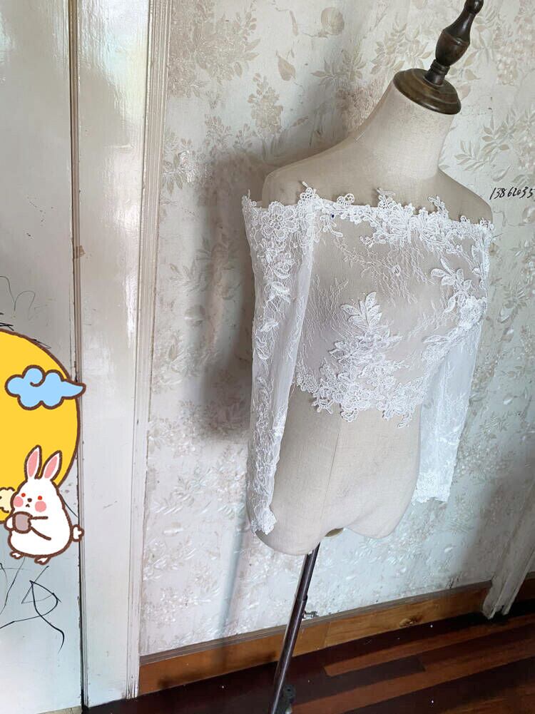 ウエディングドレス中に入れるボレロ 繊細レース オフホワイト オフショルダー 長袖  花嫁/結婚式/披露宴