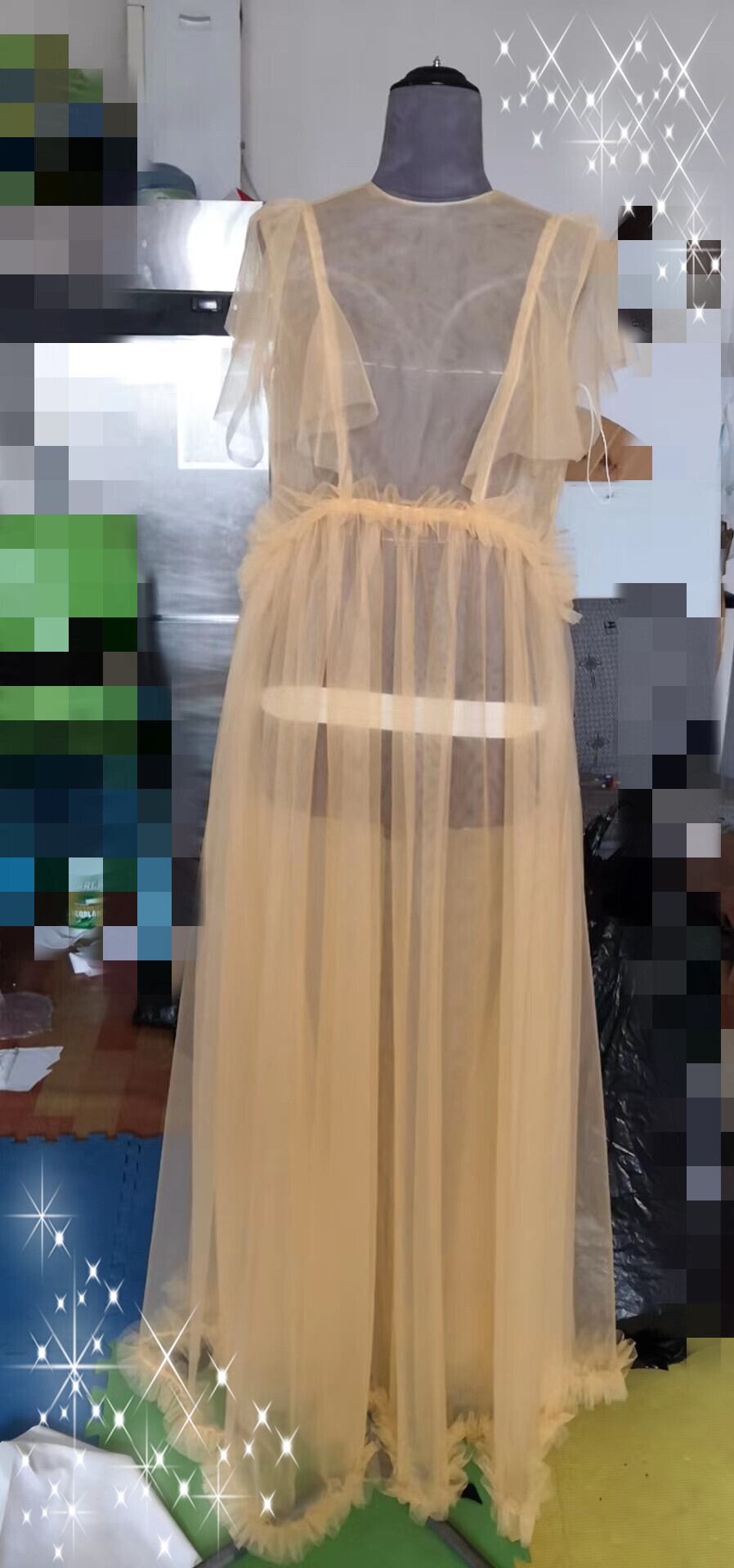 高品質! 妊婦ドレス マタニティ 写真撮影 オレンジ シースルー ワンピース ソフトチュール