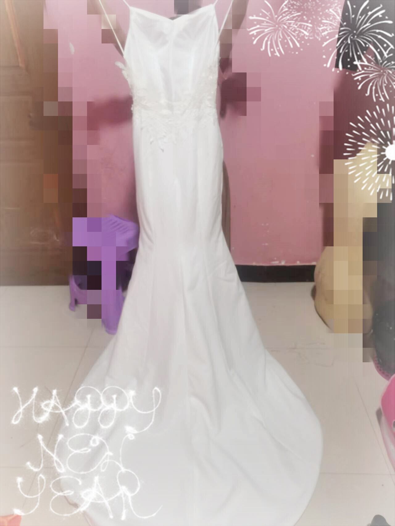 ホワイト ウエディングドレス Vネックドレス キャミソール ロングトレーン パーティードレス
