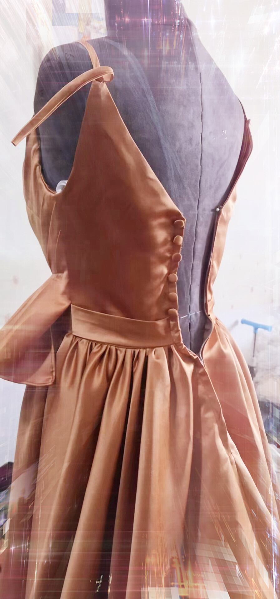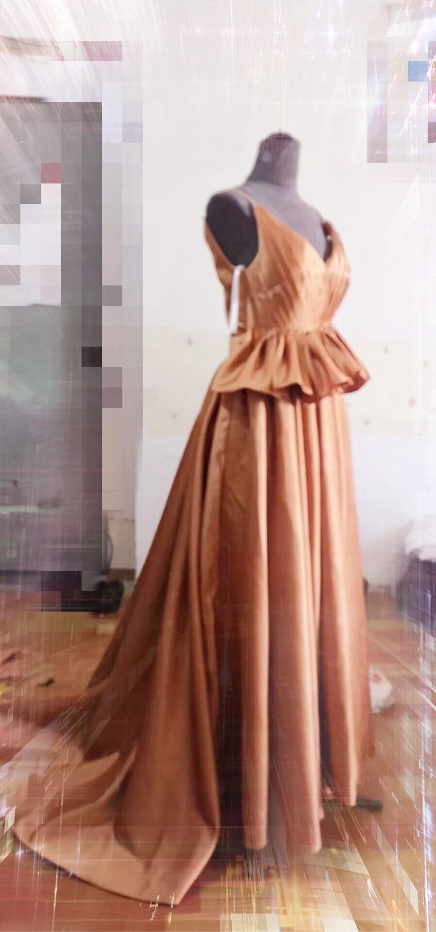 高品質! パーティードレス テラコッタ色 背中見せ Vネック 人気上昇
