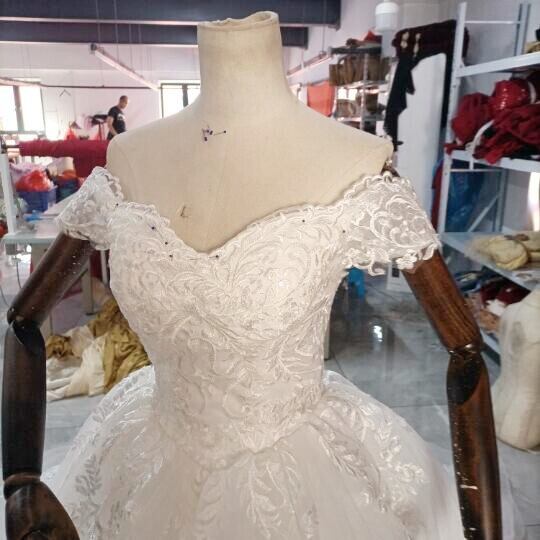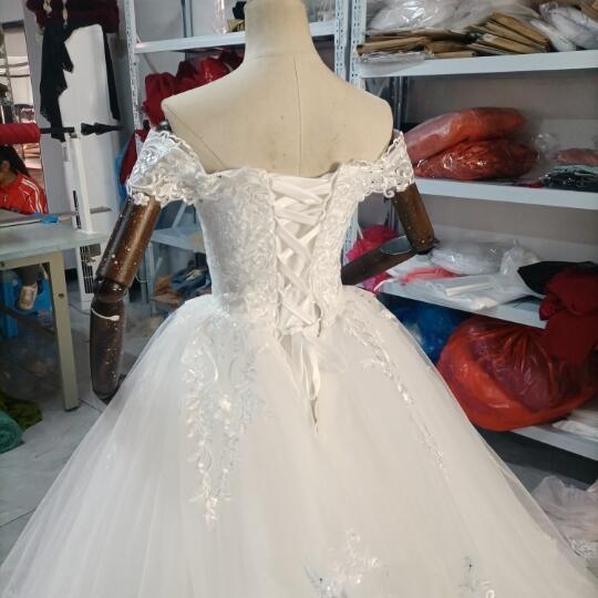 高品質! ウエディングドレス 取り外し襟 オフショルダー ミニトレーン/短トレーン 編み上げ 細見えシルエふっくら柔らか