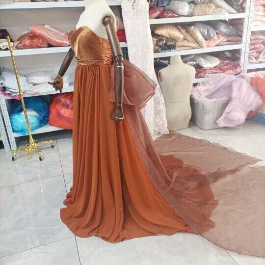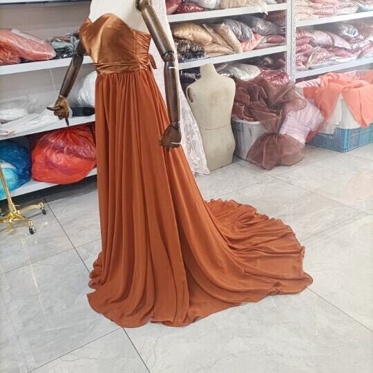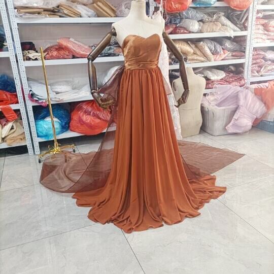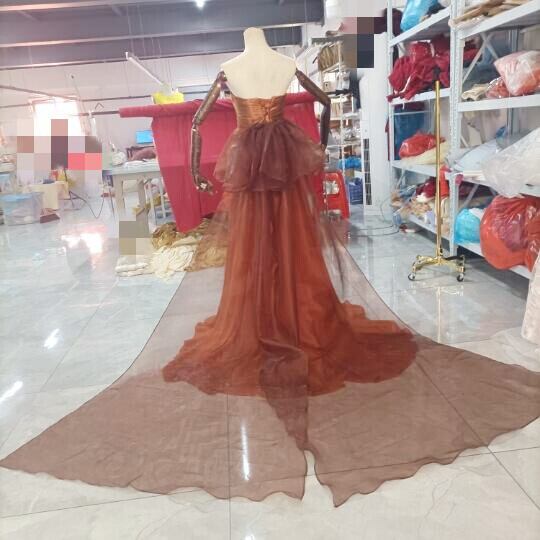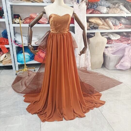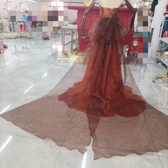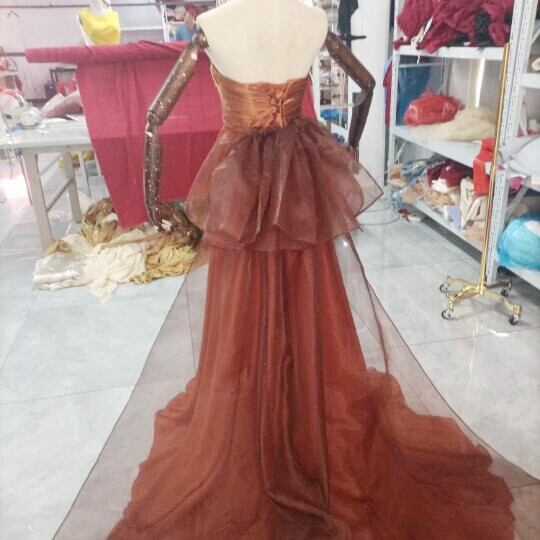 結婚式ドレス テラコッタ色 カラードレス トレーン ハートカット オーダーメイド可能