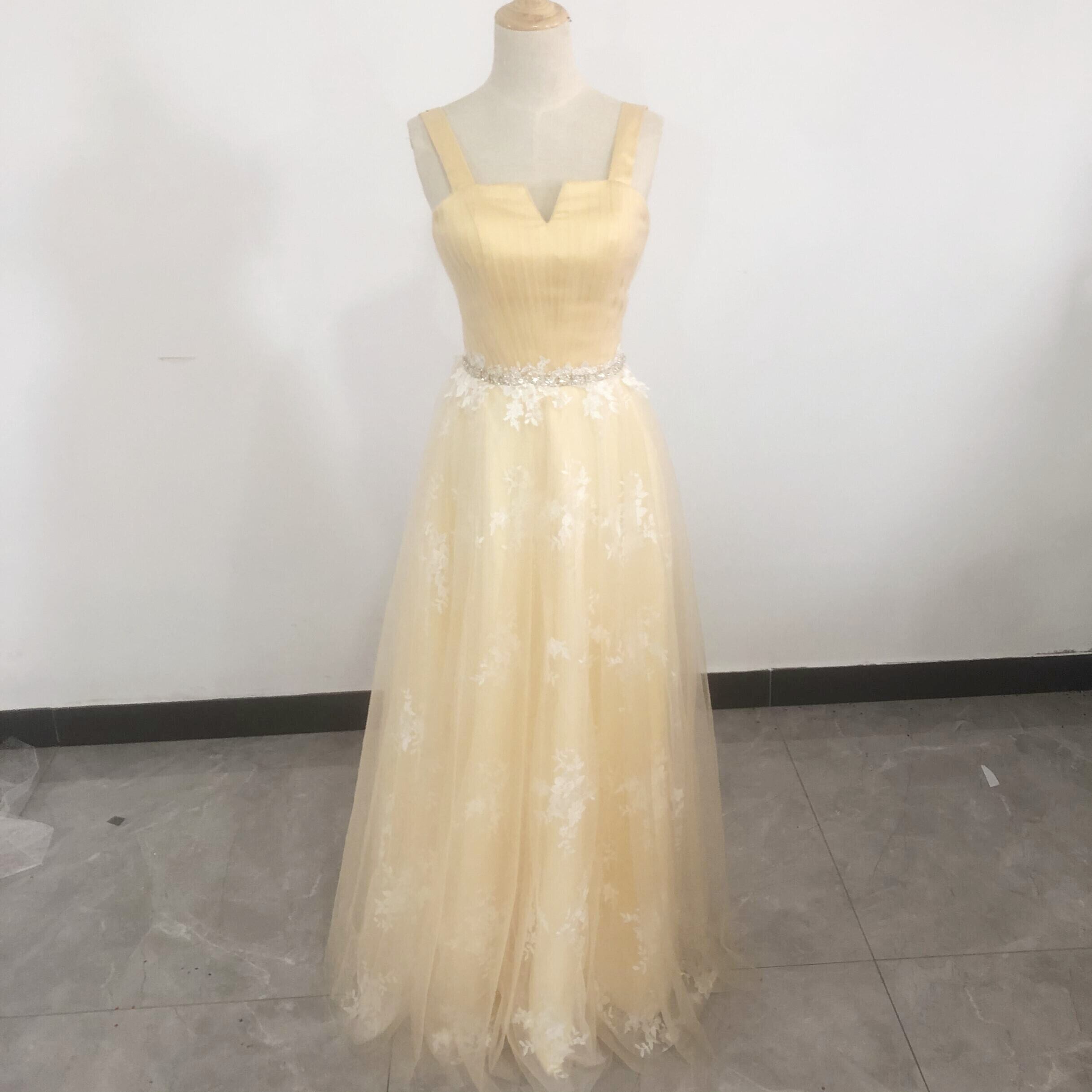 豪華!イエロー カラードレス ロング 裾引き 美しい花レース 二次会花嫁