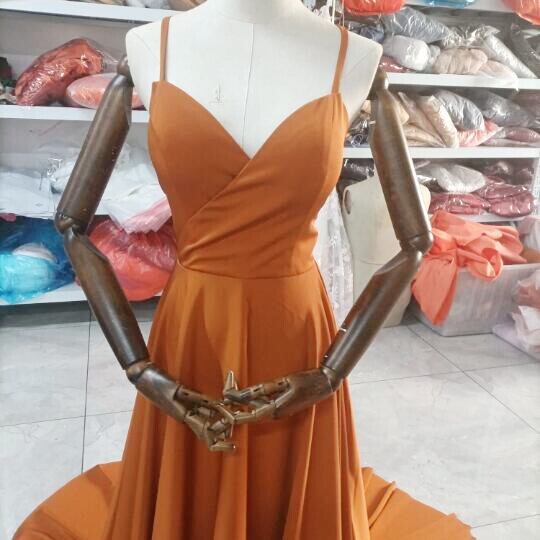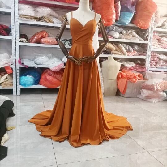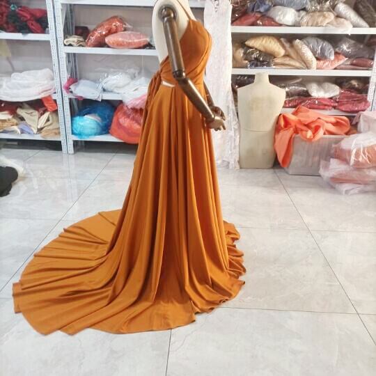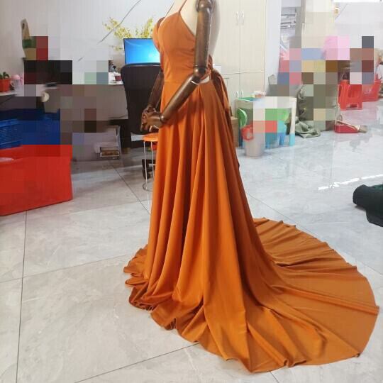 高品質!パーティードレス テラコッタ色 リボン 背中見せ 前撮り結婚式 2次