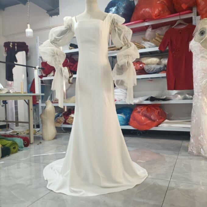 フランス風 スクエアネック 姫袖 ウエディングドレス マーメイドライン 2次会/披露宴/挙式 前撮り