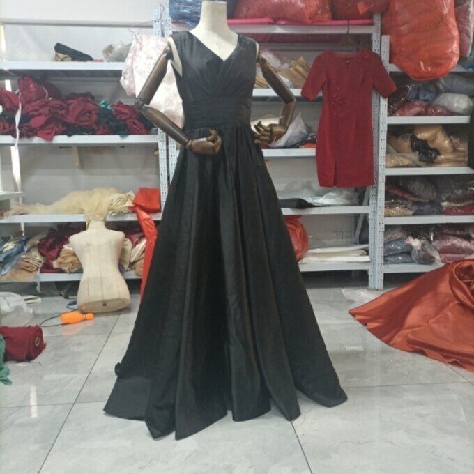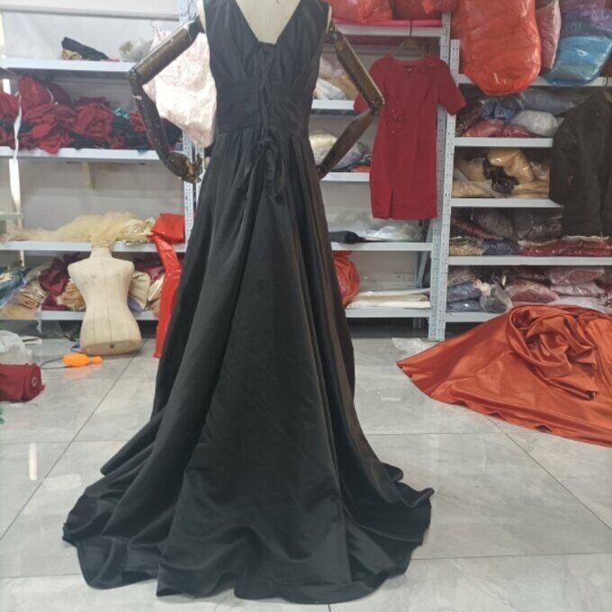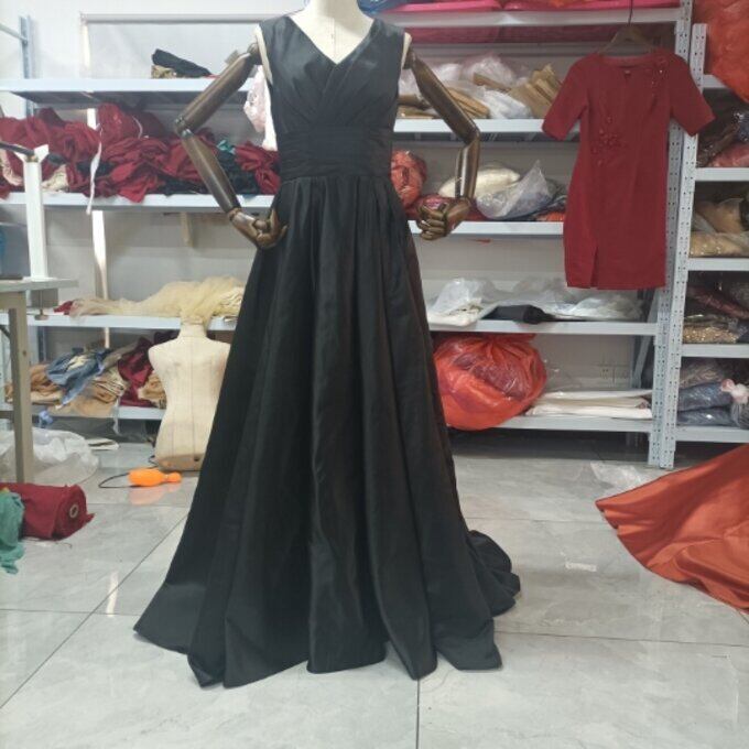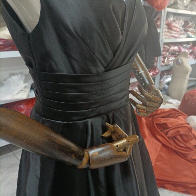 高品質!黒いサテンロングワンピース 二次会ドレス クラシカル エレガント