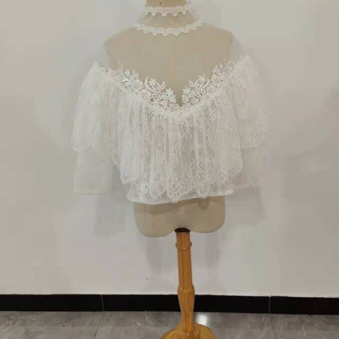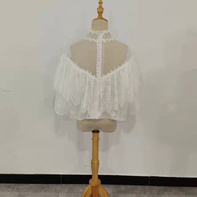 ケープ、マント ウエディングドレス ハイネック 可憐な花刺繍のトップス ボレロ 羽織り 結婚式 花嫁