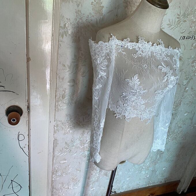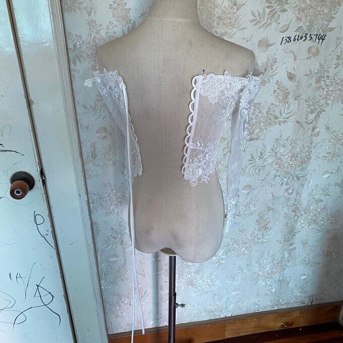 フランス風ウエディングドレス ボレロ オフホワイト 長袖  編み上げ 花嫁/ウェディングド
