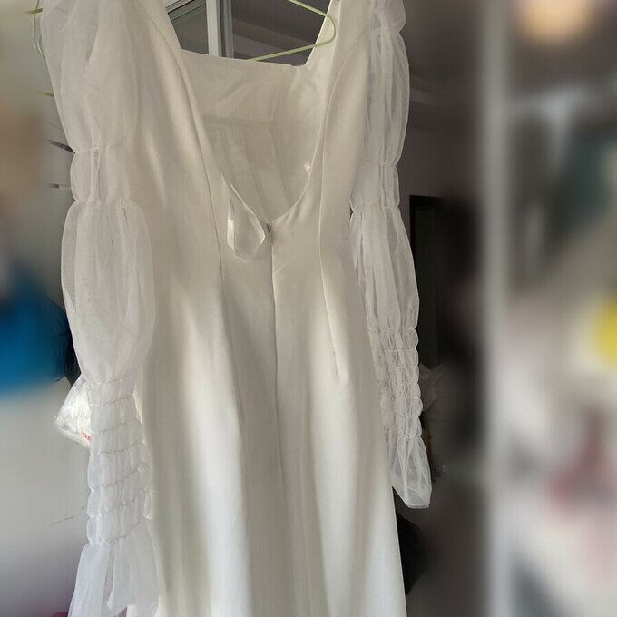 フランス風 スクエアネック 姫袖 ウエディングドレス マーメイドライン 2次会/披露宴/挙式 前撮り