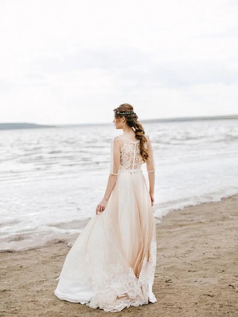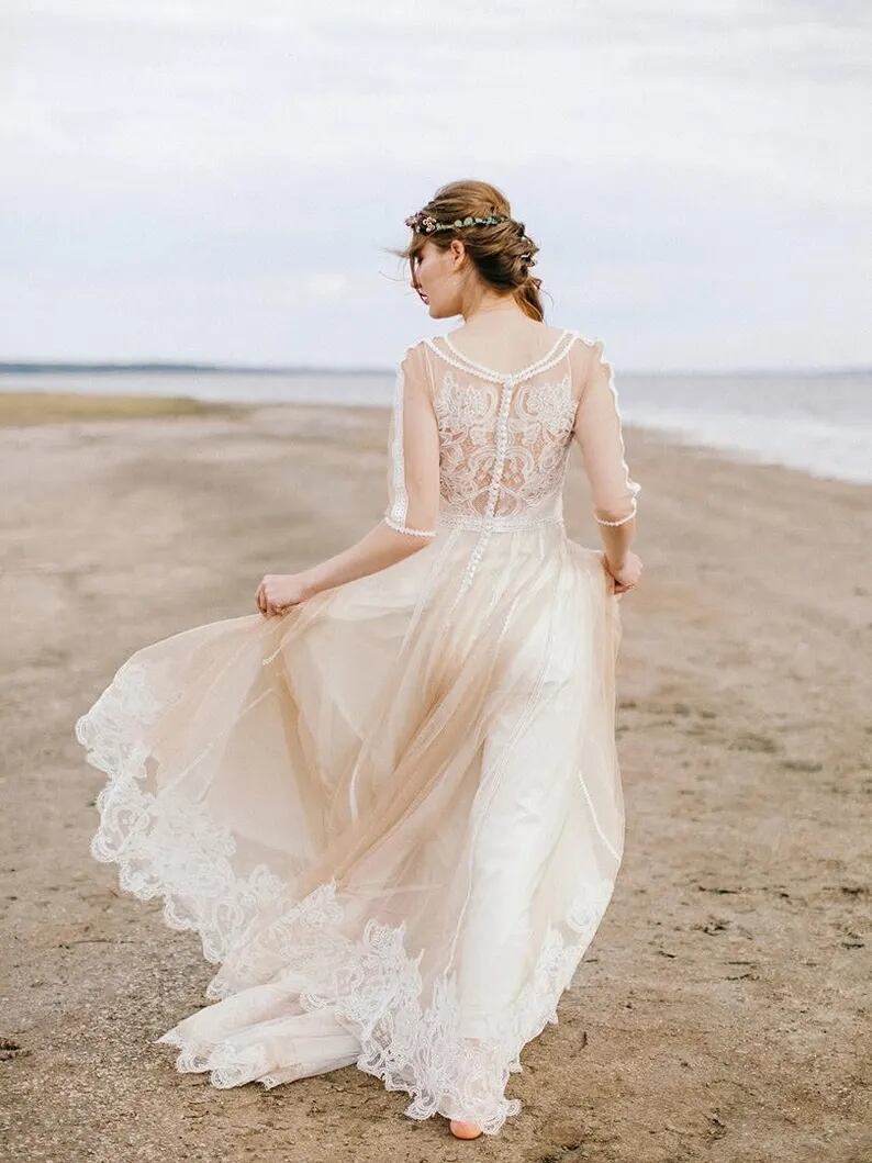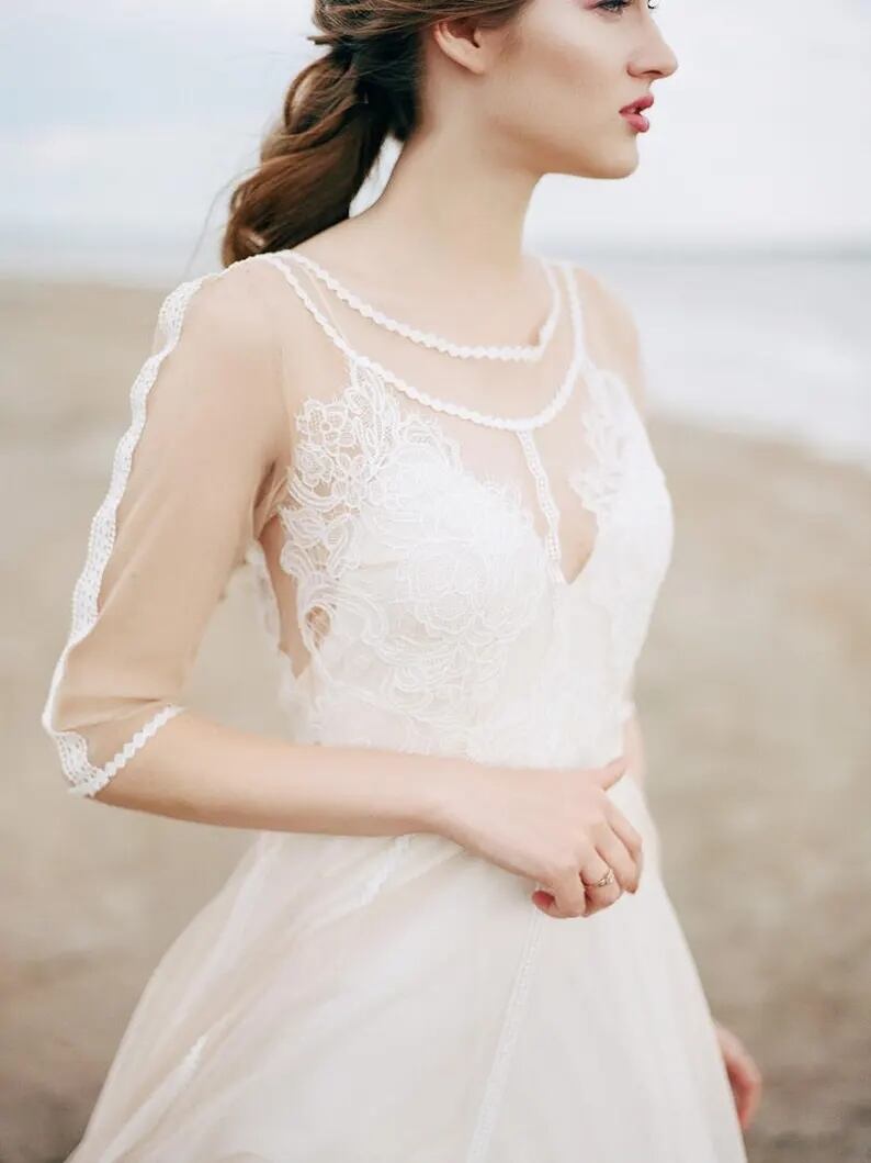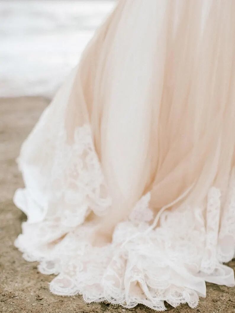 繊細レース ウエディングドレス/パーティードレス ソフトチュールトップス+スカート花嫁/結婚式/二次会/パーティー
