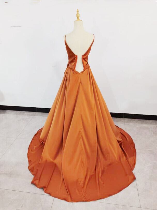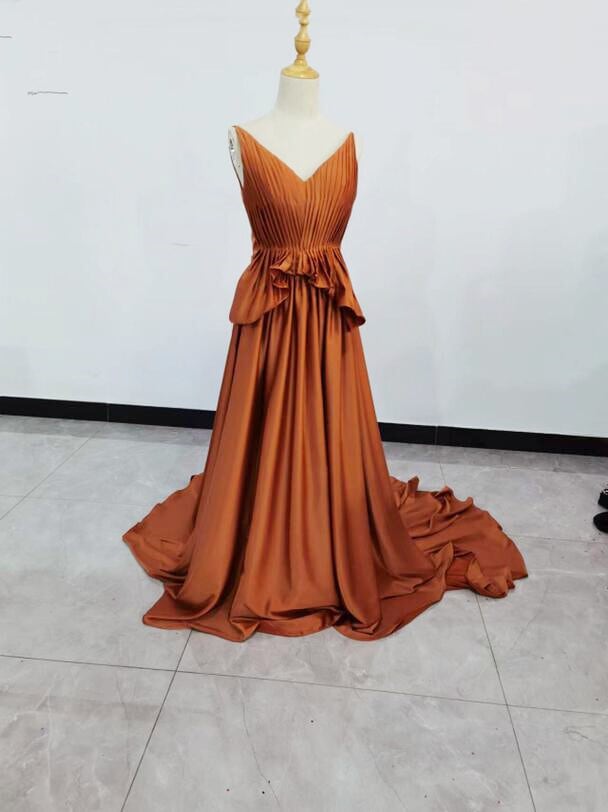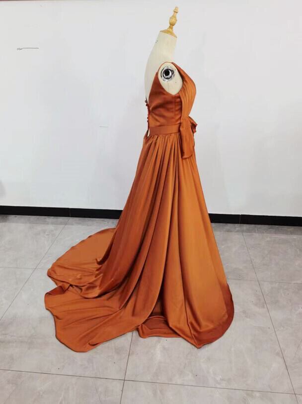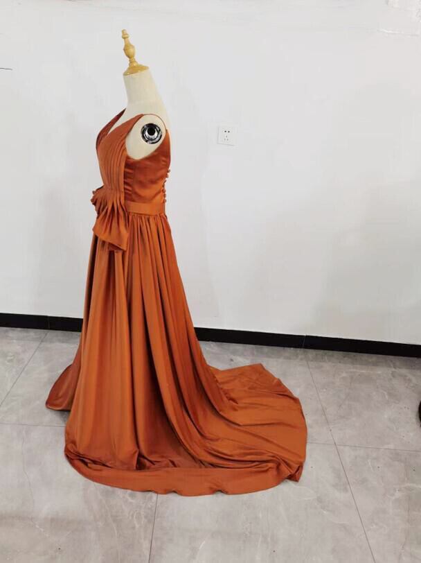 高品質!ウエディングドレス /パーティードレス テラコッタ色サテンドレス テラコッタ お呼ばれ/二次会/前撮り