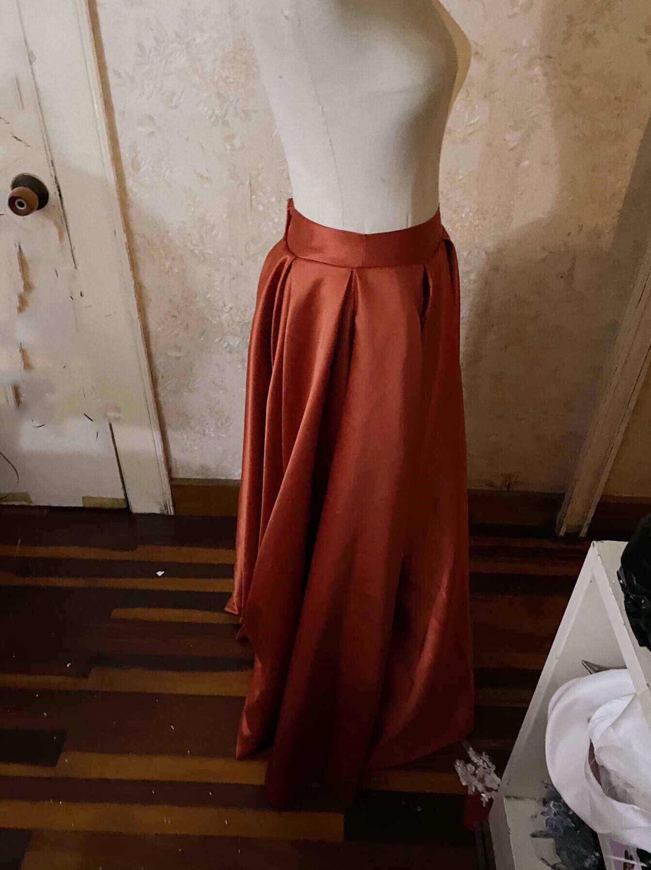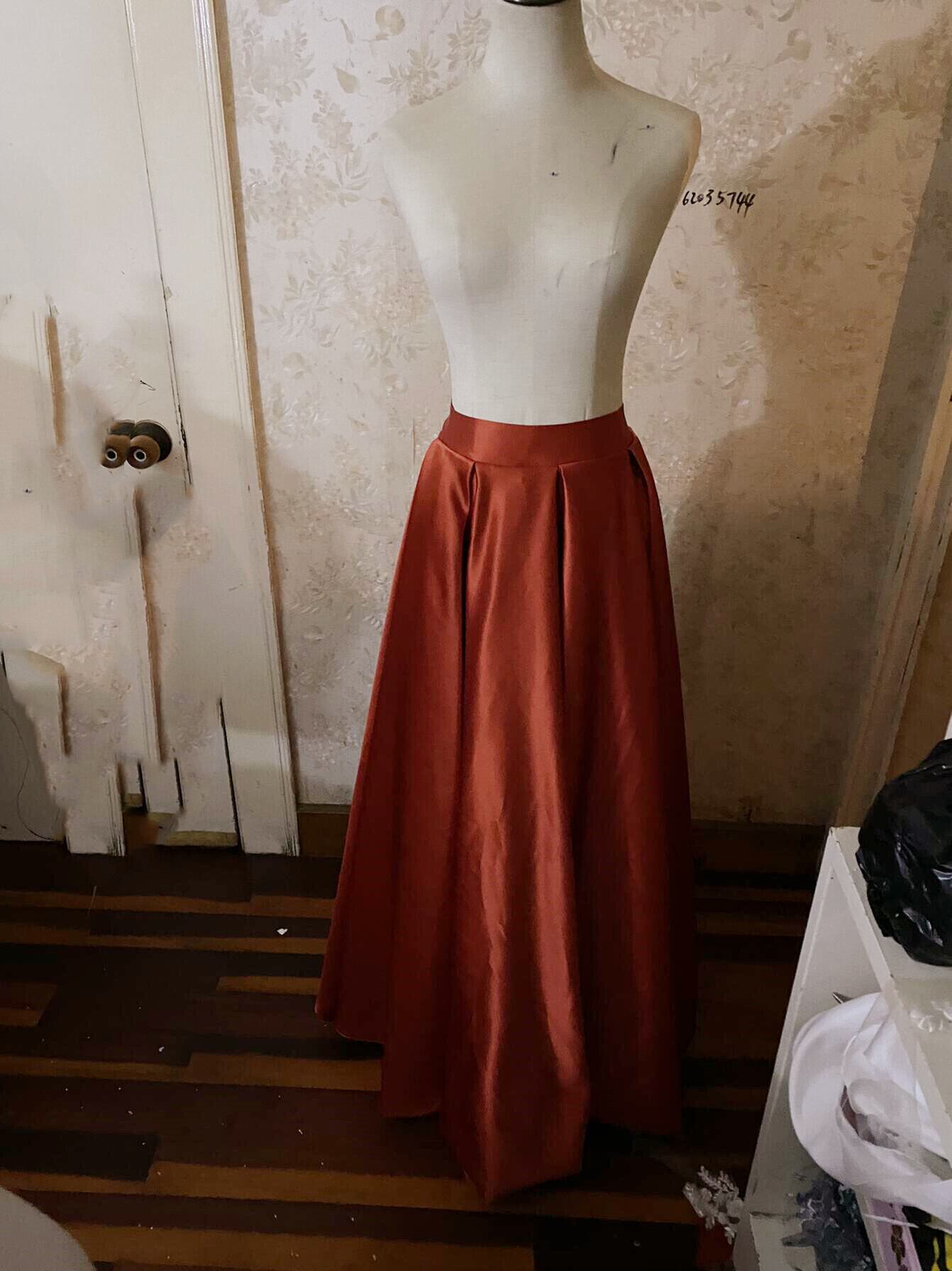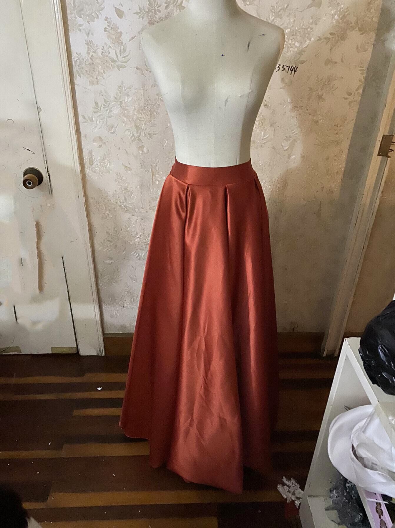 テラコッタ色 光沢サテン ロング スカート