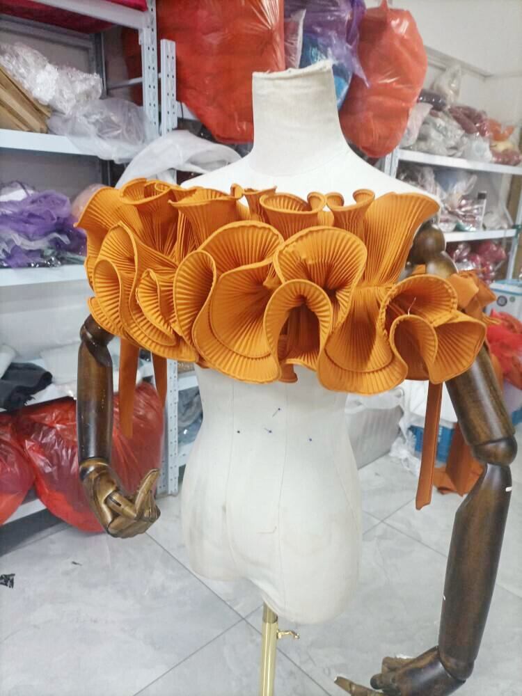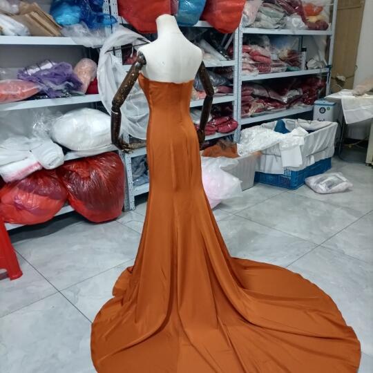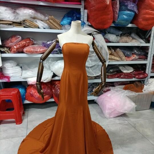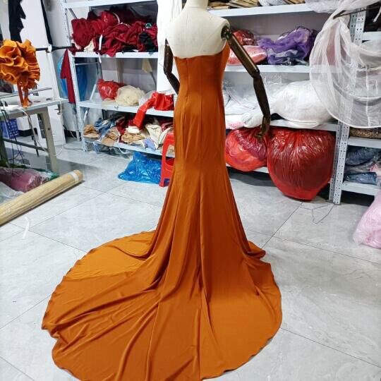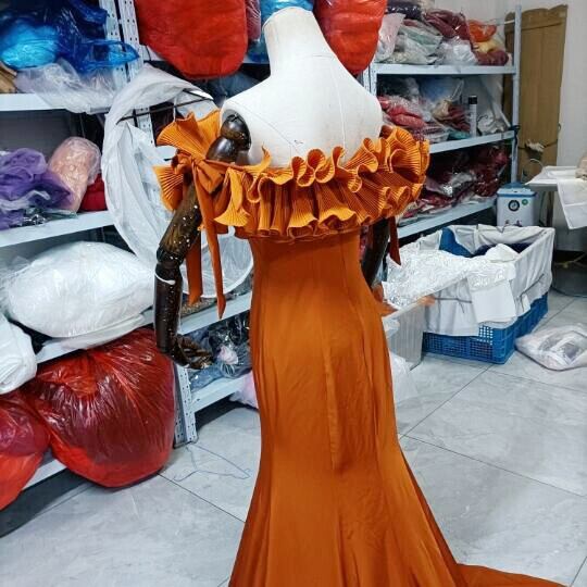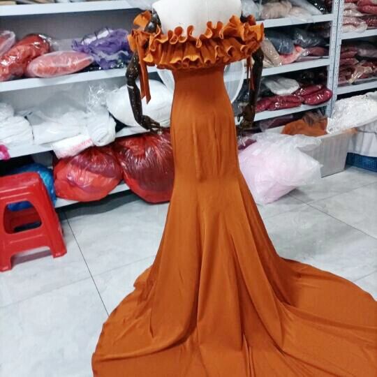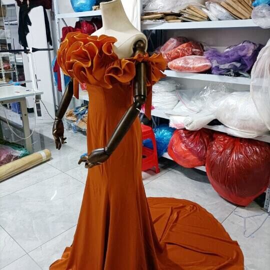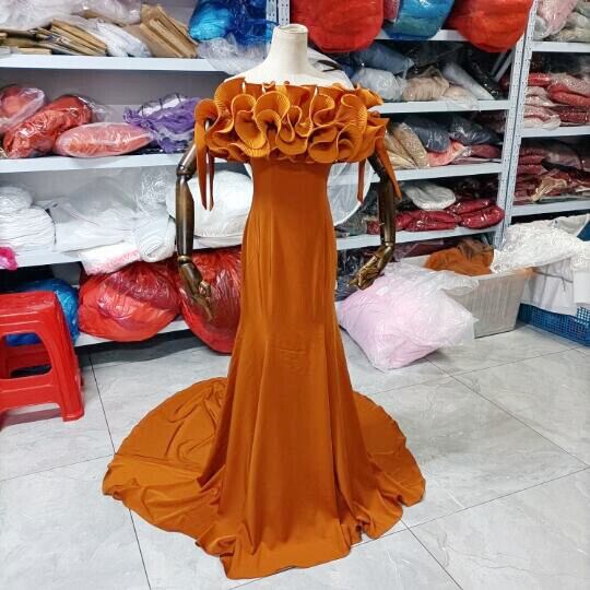 人気上昇!カラードレス テラコッタ色取り外しオフショルダー袖 色直し フリルたっぷり サイズ調整可能、色変更可能 マーメイドライン2次会/挙式/前撮り | David1021k Dress(ダヴィドレス)