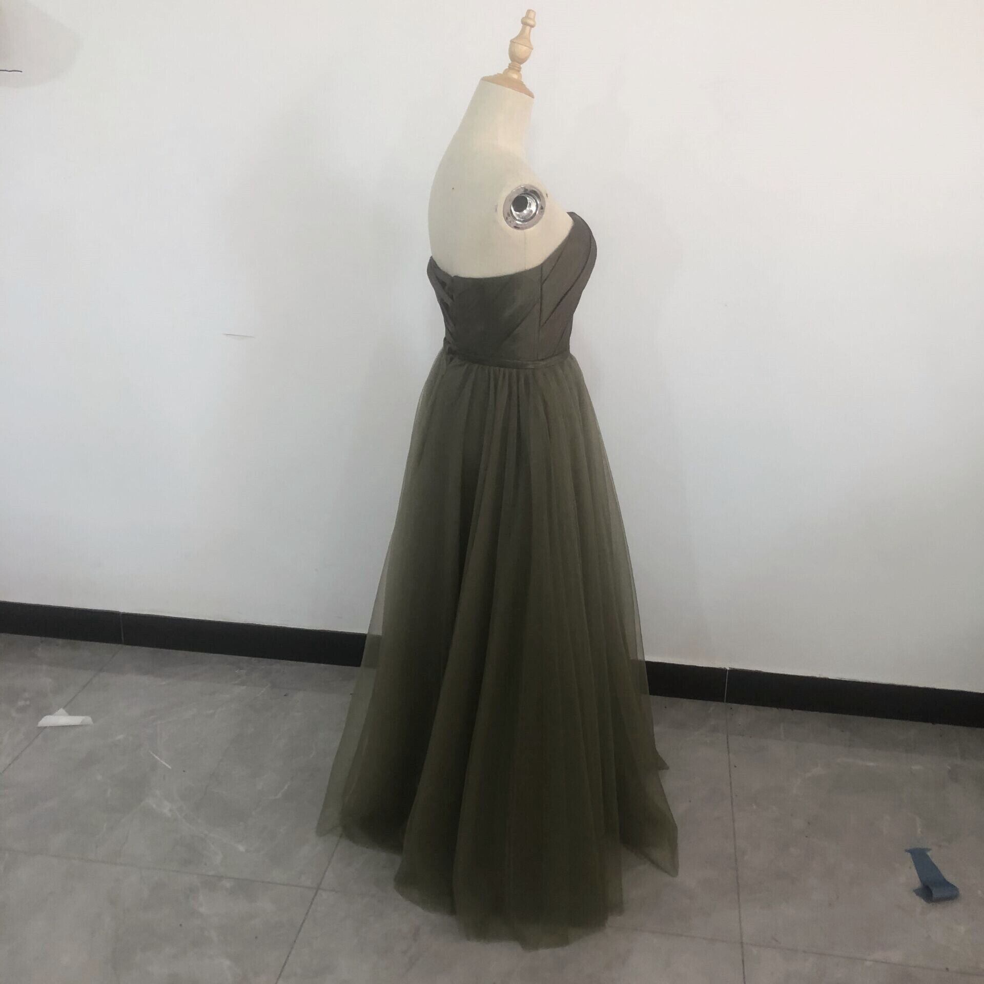 雅やか 深めな 緑 カラードレス ロング ベアトップ/音楽会/発表会