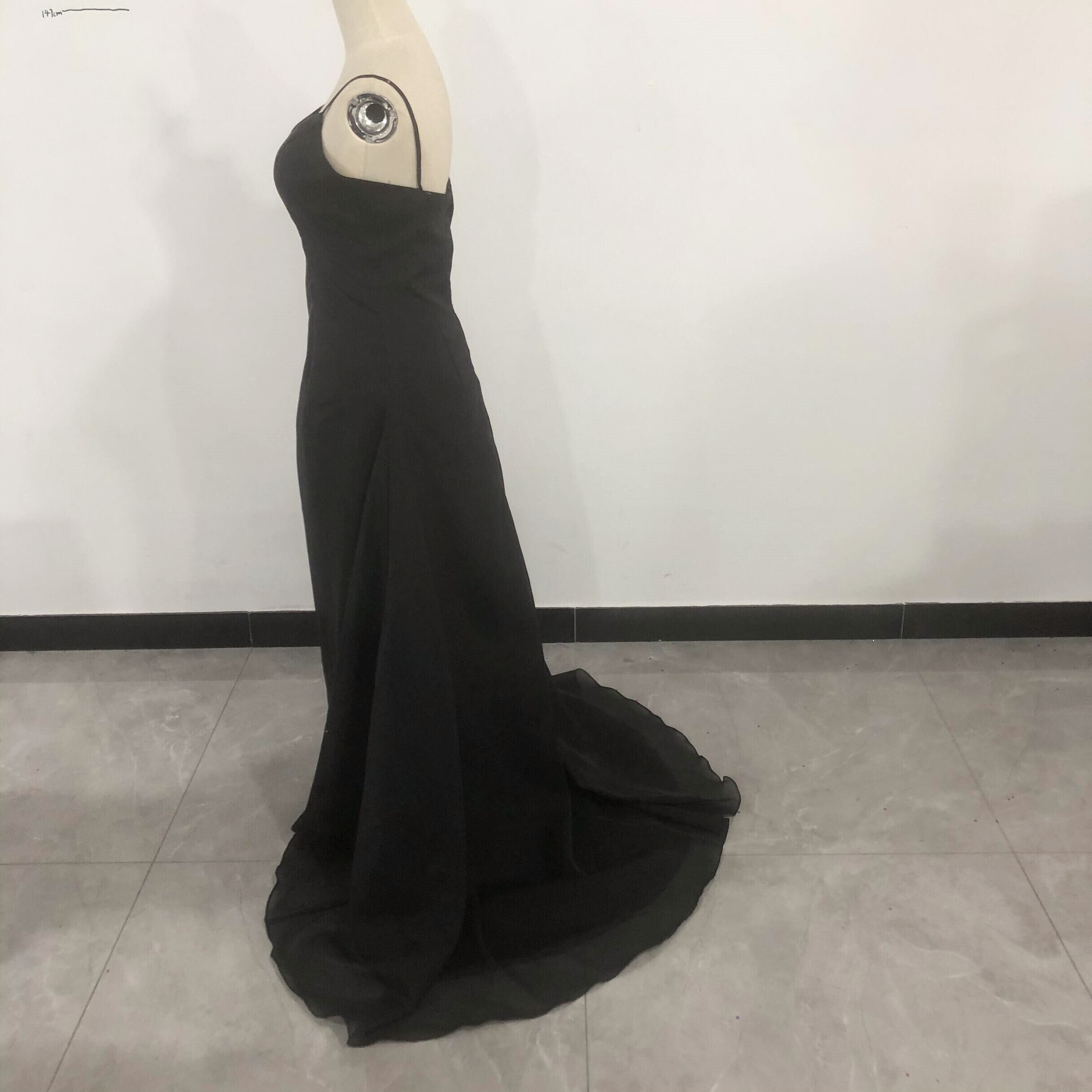 雅やか 黒カラードレス 背中見せ 短トレーン Vネック お呼ばれ 二次会