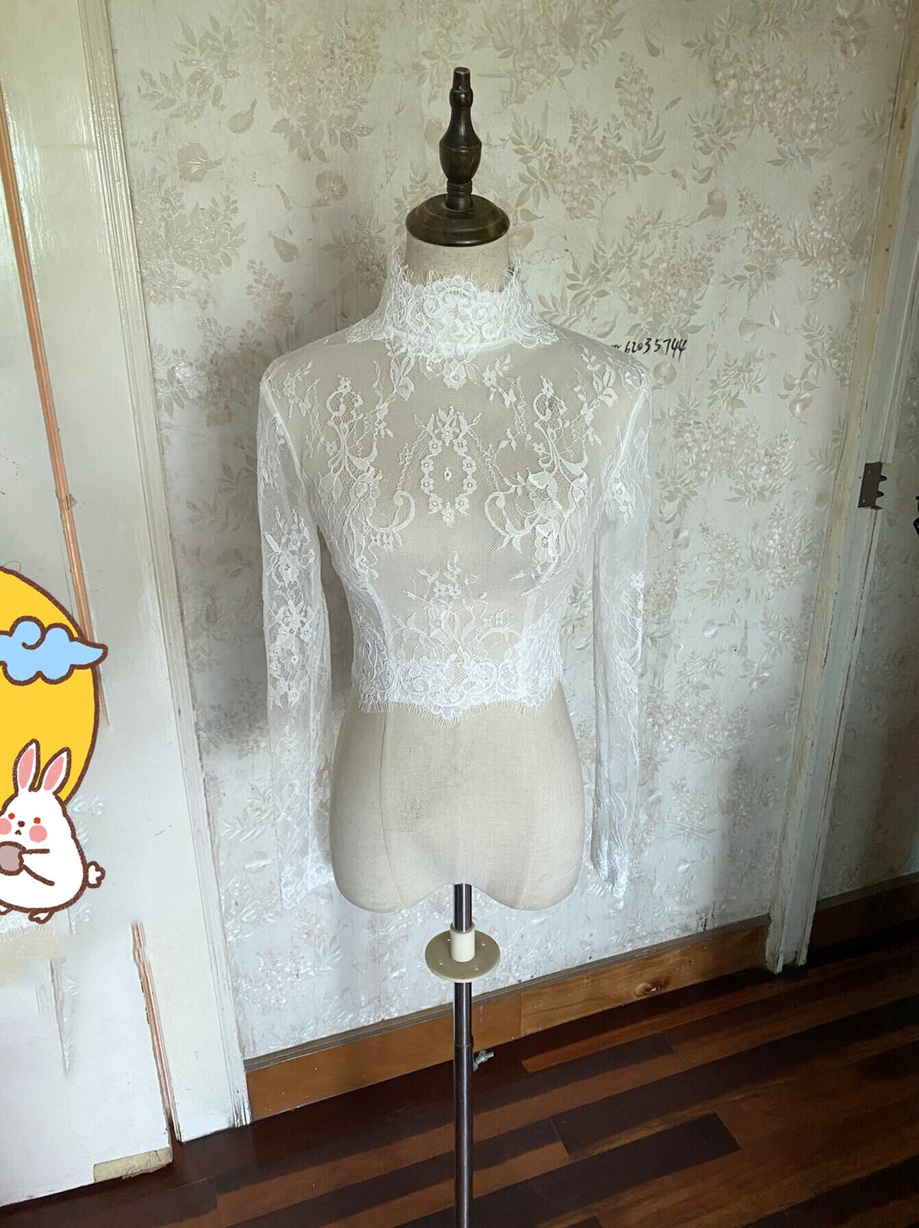 上品なくるみボタン ハイネック レースボレロ トップス ウエディングドレス