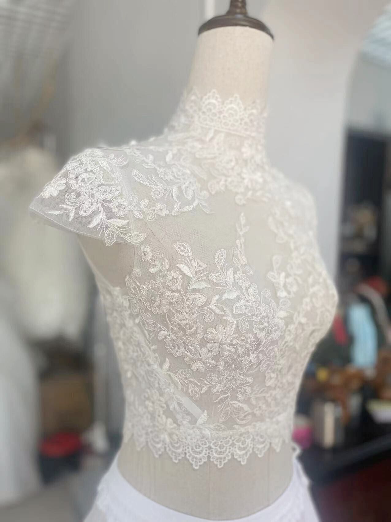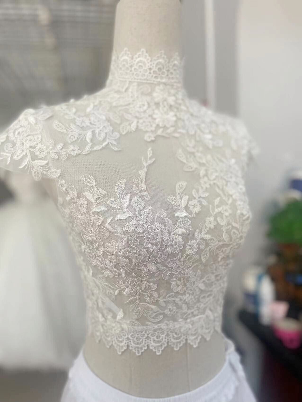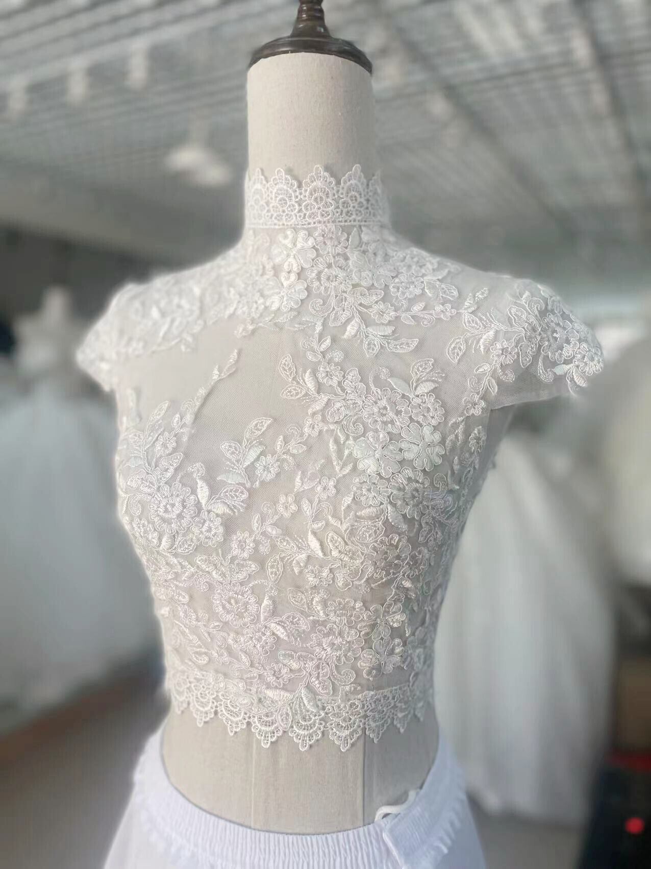 上品なくるみボタン ハイネック レースボレロ トップス ウエディングドレス