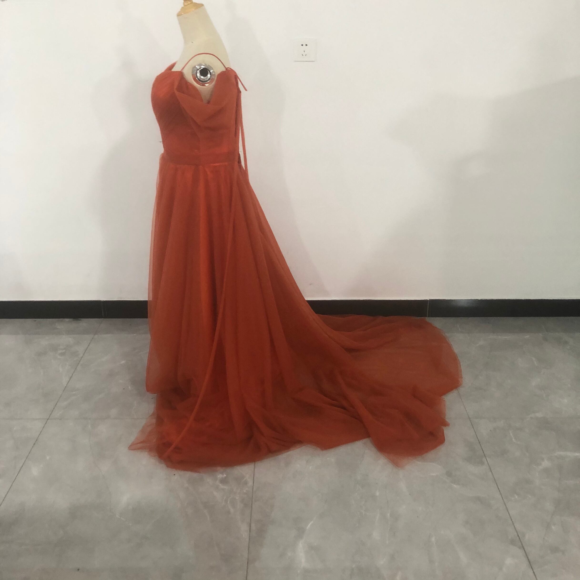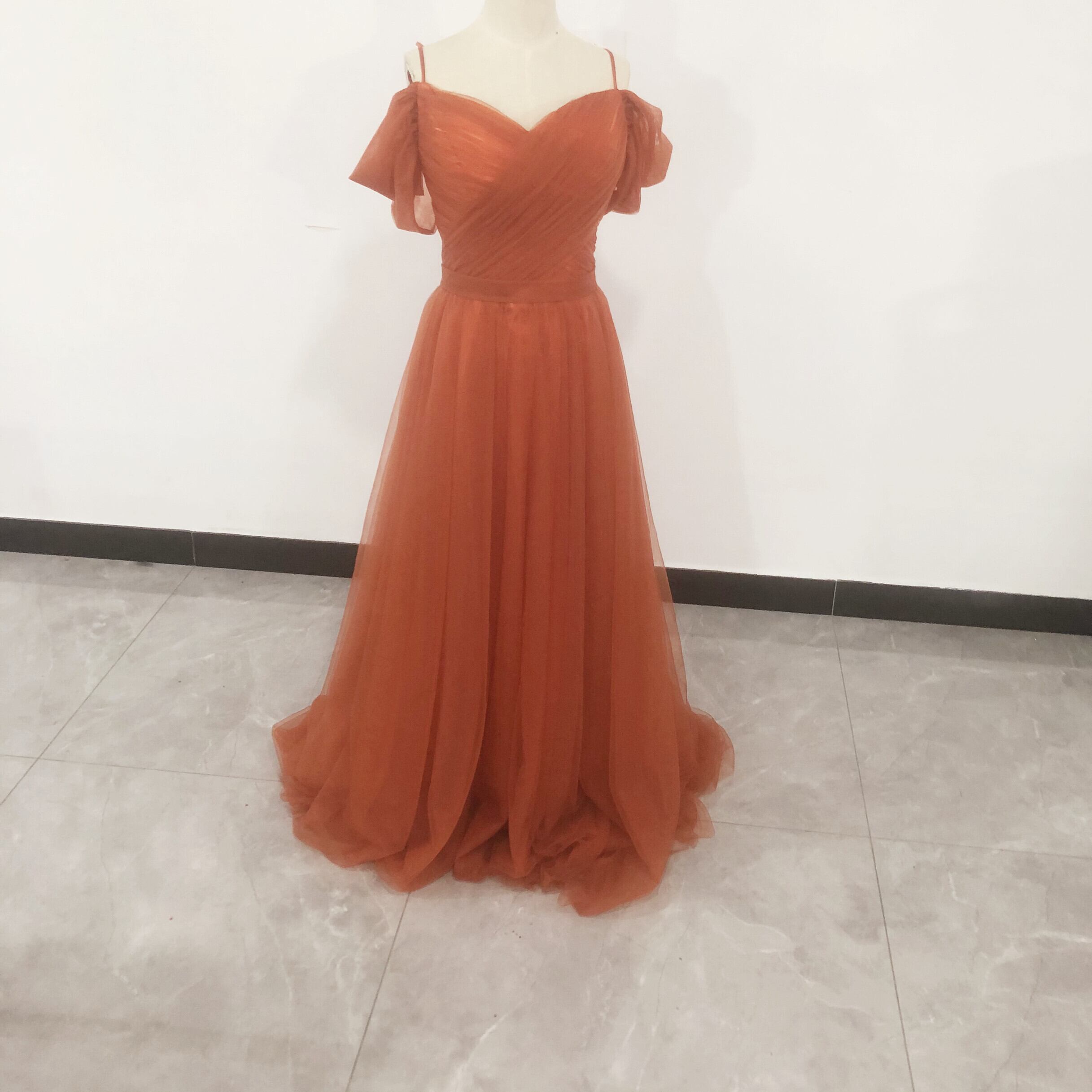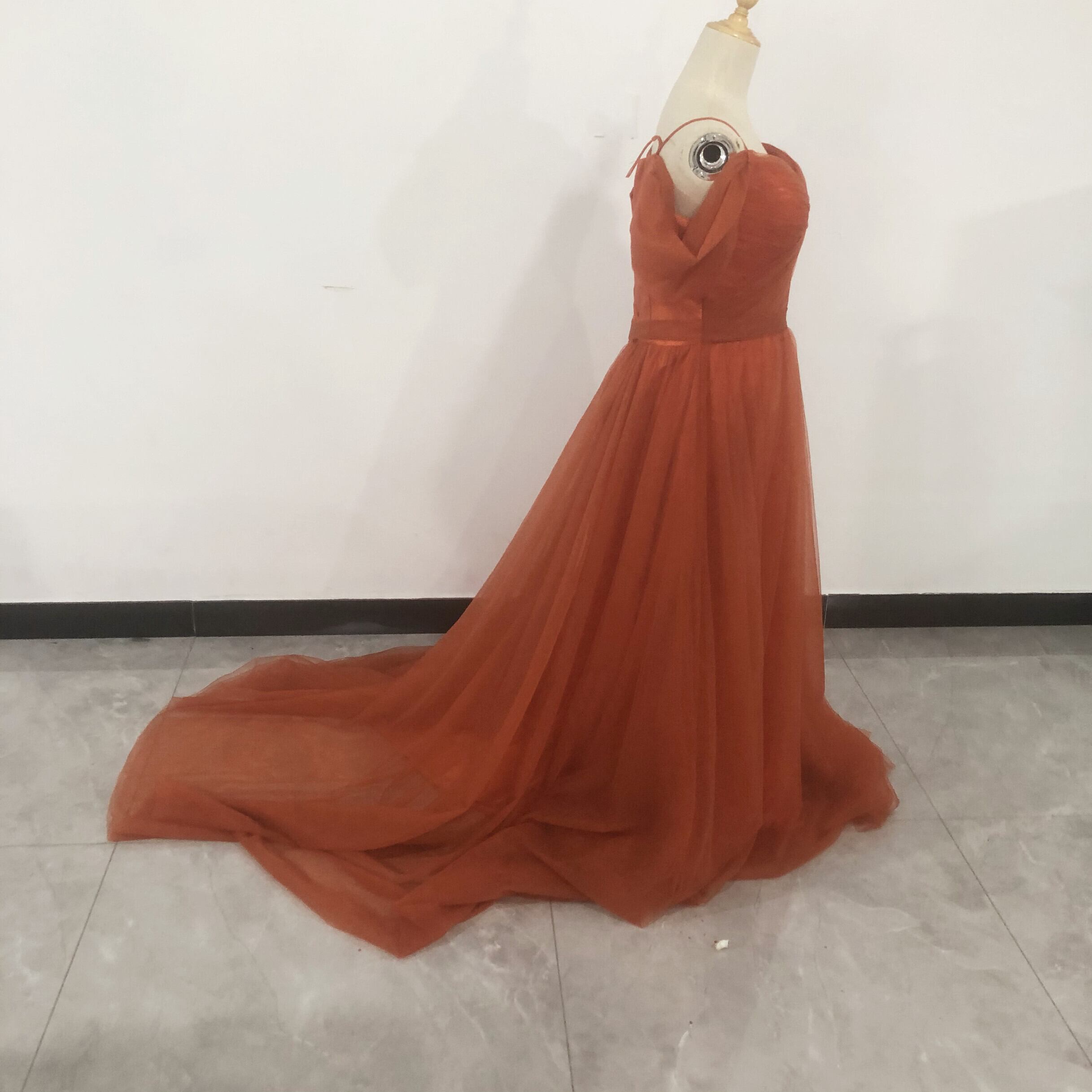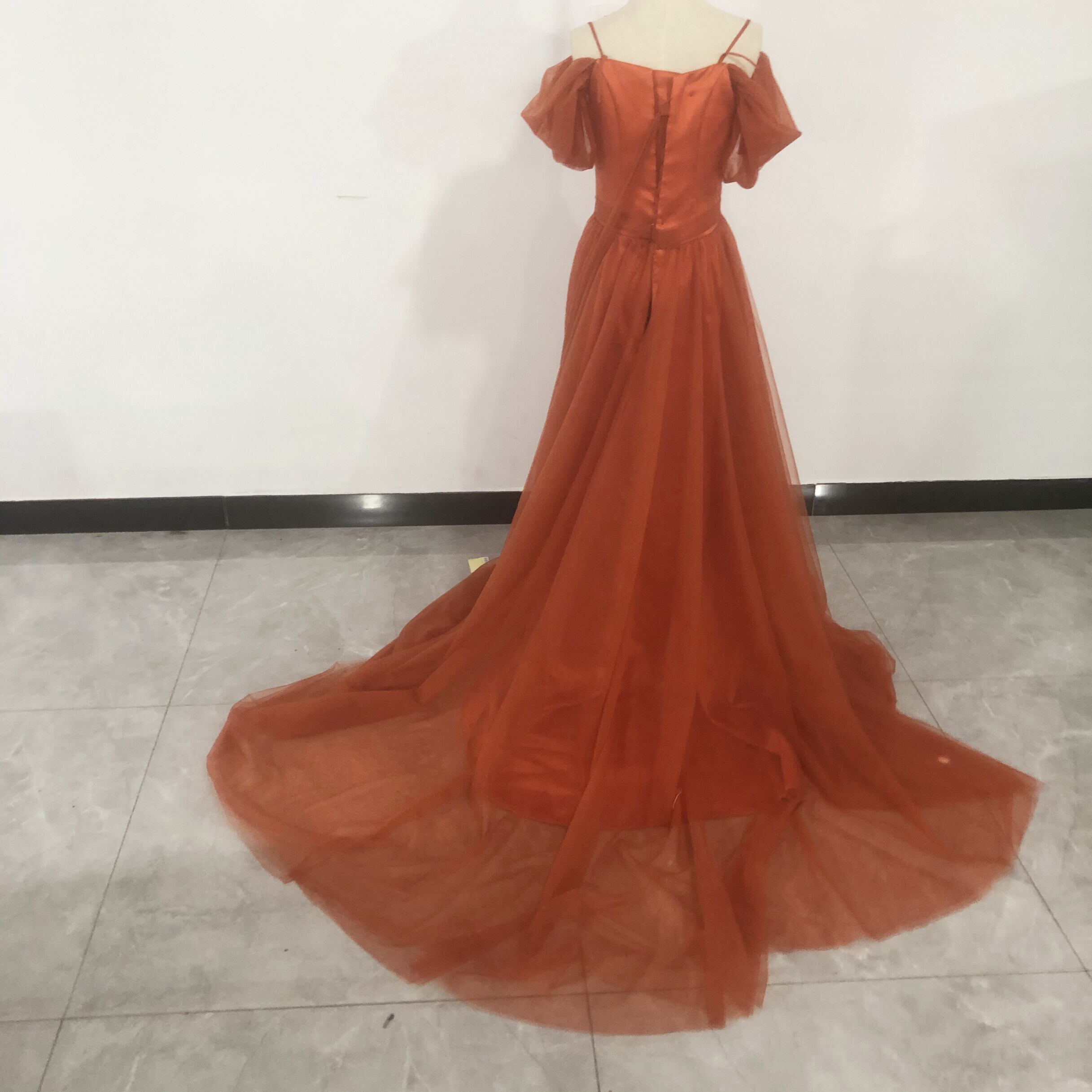 美品!カラードレス キャミソール オフショルダー パーティードレス テラコッタ色 ソフトチュール /2次会/挙式/前撮り
