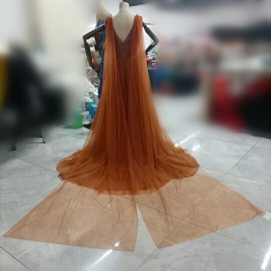 人気上昇!カラードレス テラコッタ色 Vネックドレス ソフトチュール 憧れのドレ