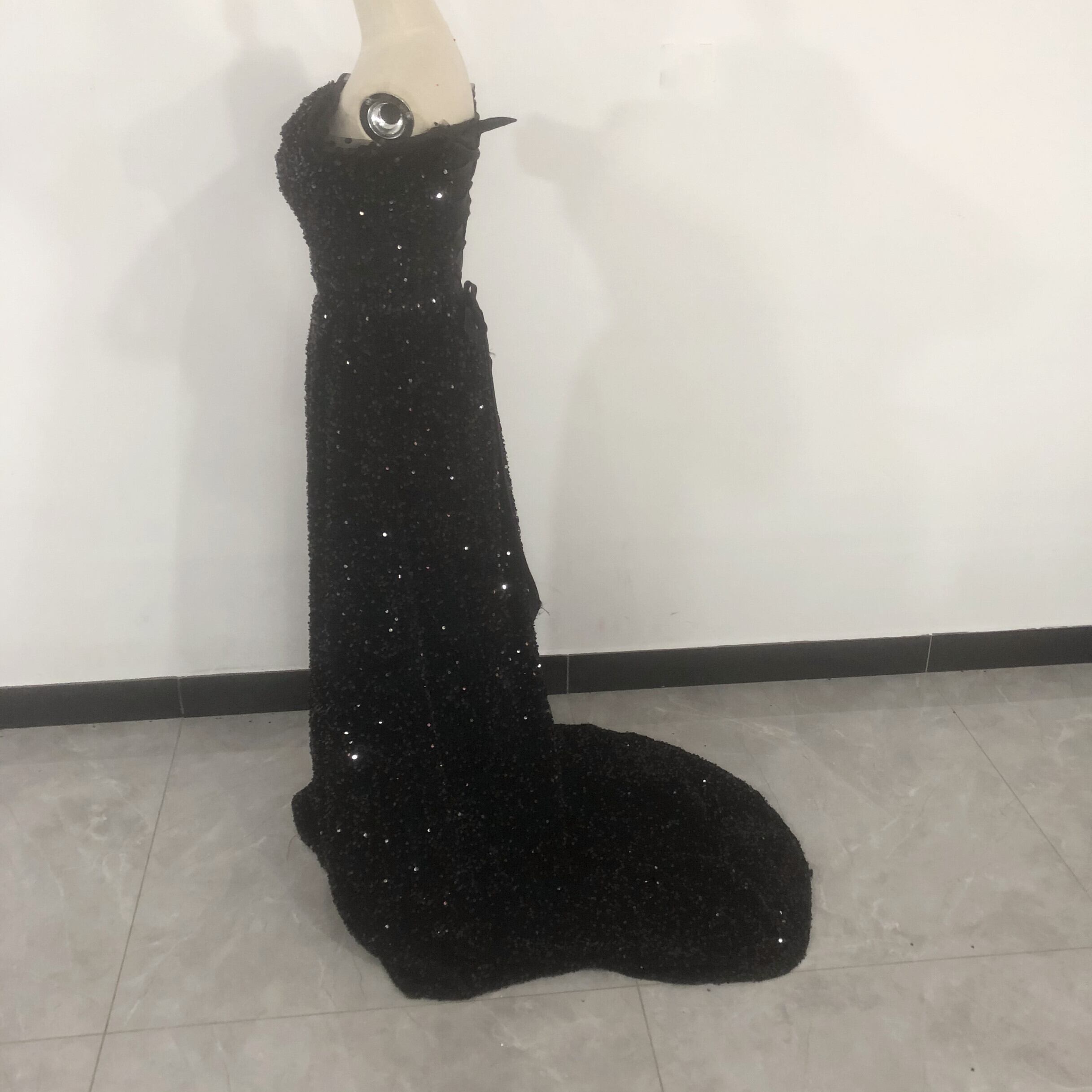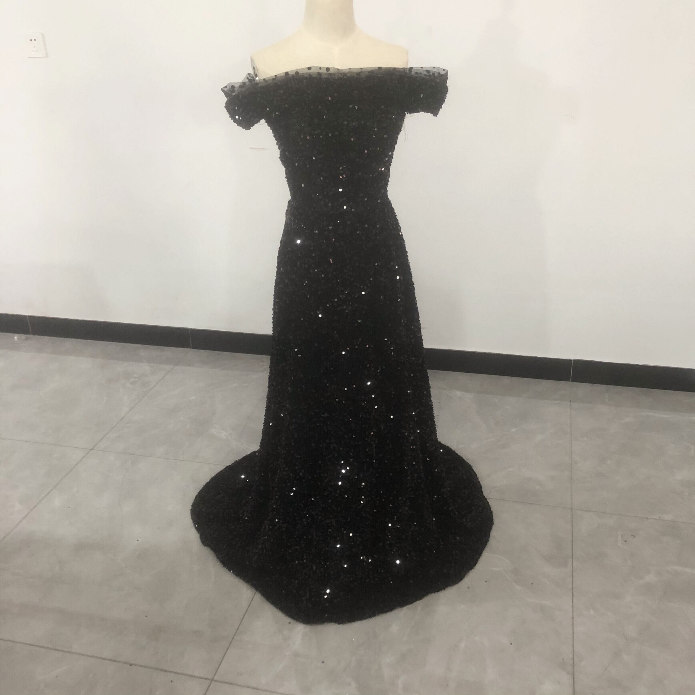 上品! イブニングドレス 黒 オフショルダー スパンコール パーティドレ/2次会/挙式/前撮り