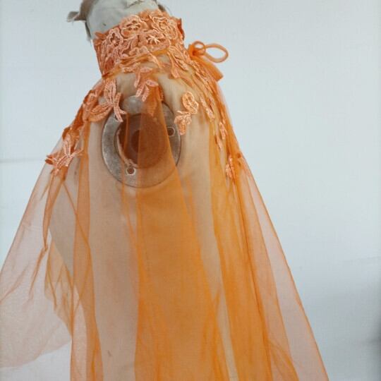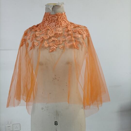 エレガント オレンジ トップス ケープ風ボレロ ウエディングドレス 咲き誇る透け花レース