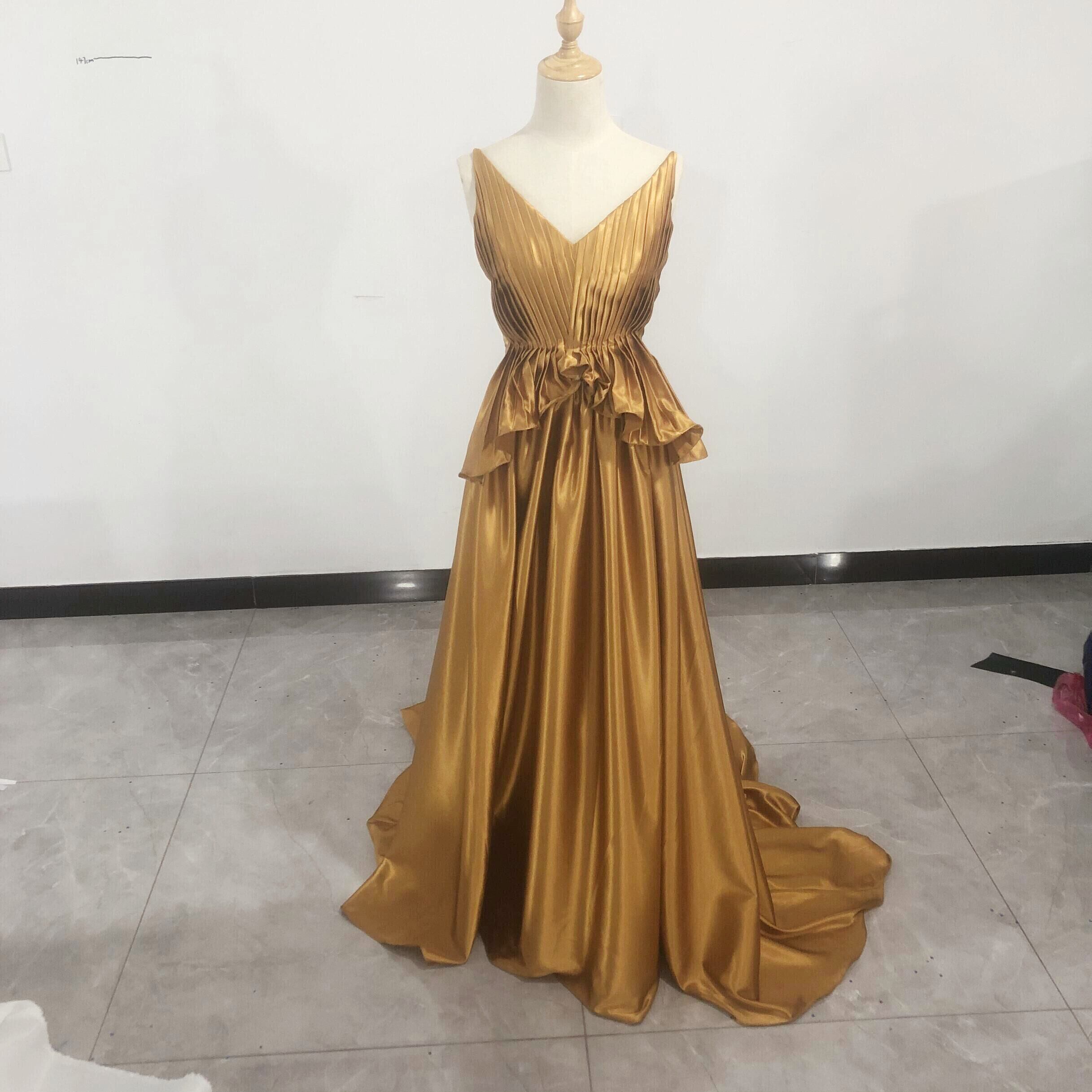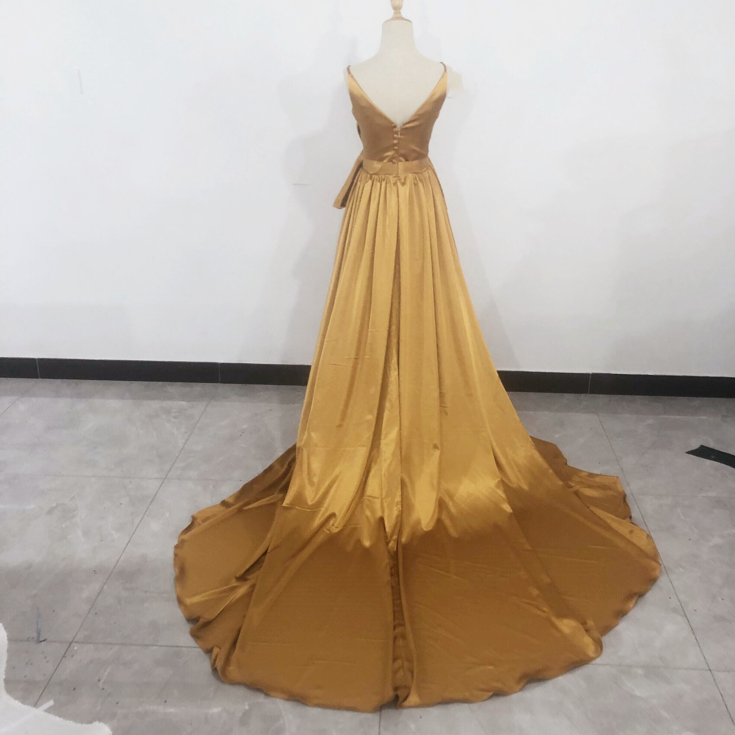 高品質!イエローカラードレス 背中見せ Vネック 人気上昇/2次会/前撮り/花嫁/
