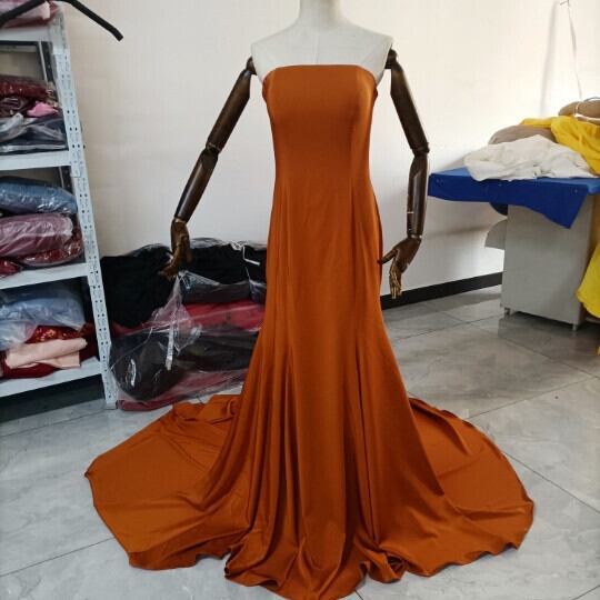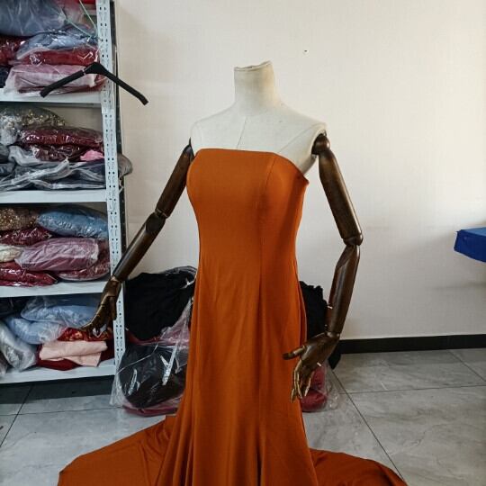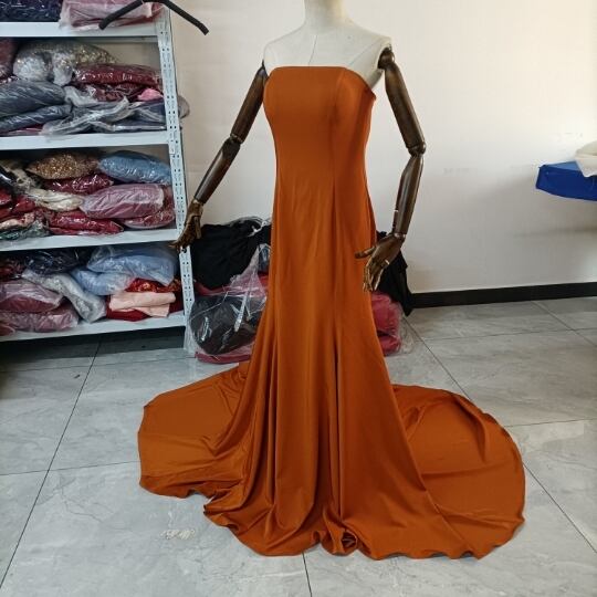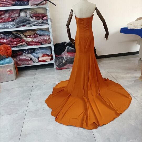 大人気上昇! テラコッタ色 カラードレス スレンダービスチェ ソフトマーメイドライン
