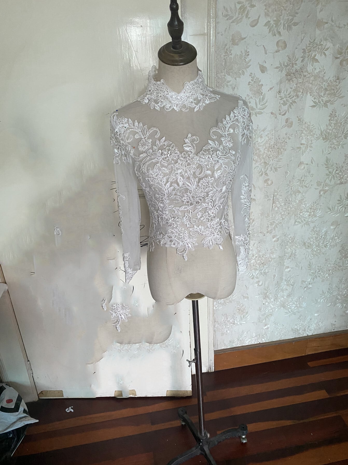 上品 なくるみボタン ハイネック レースボレロ トップス ウエディングドレス