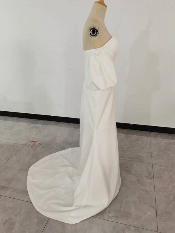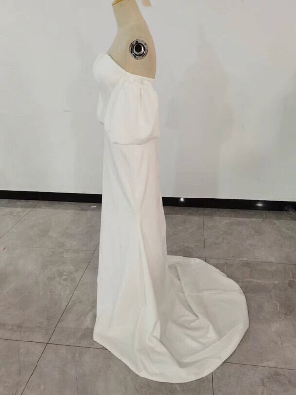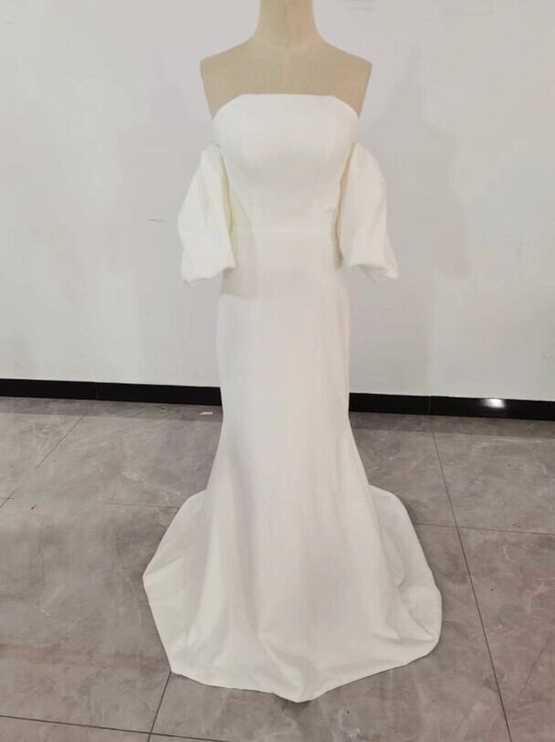 人気上昇!ホワイト ウエディングドレス ベアトップ 取り外し袖  二次会/2次会/挙式/前撮り