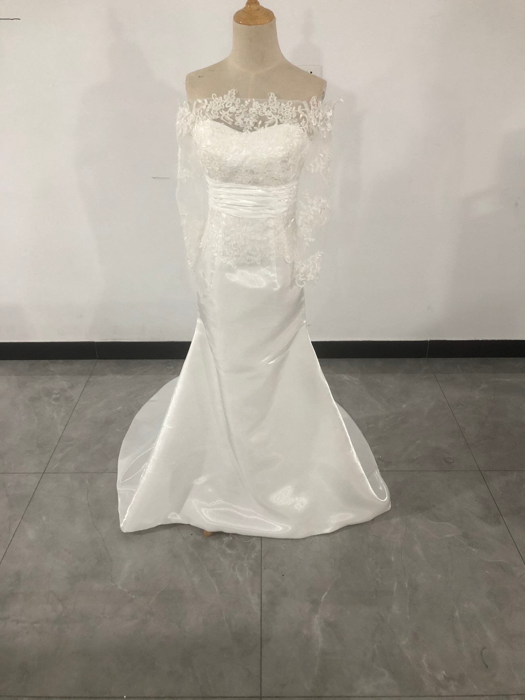 憧れのドレス オフショルダー ホワイト パーティードレス 二次会 前撮り 挙式 魅惑の花レース 七分袖丈 ウエディングド