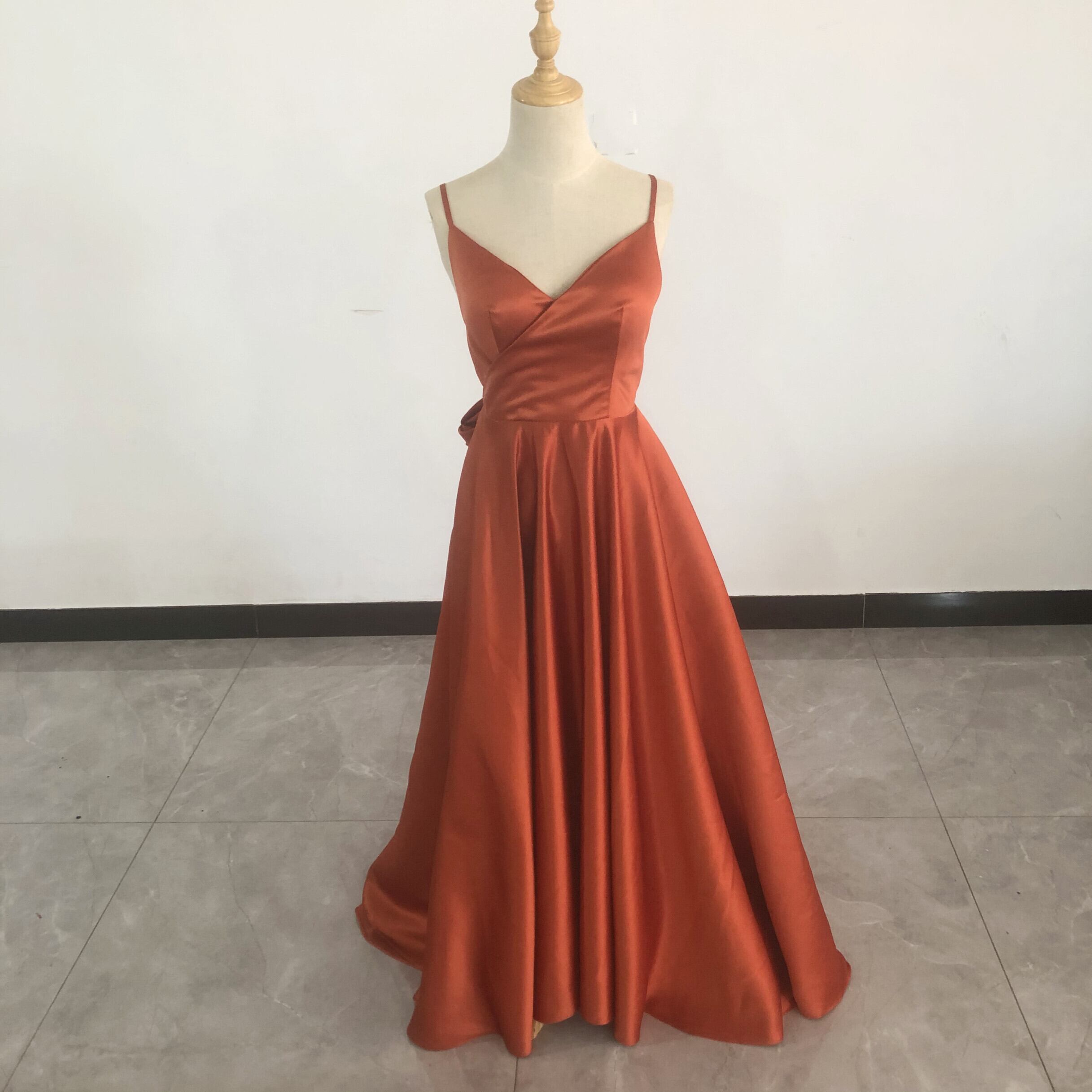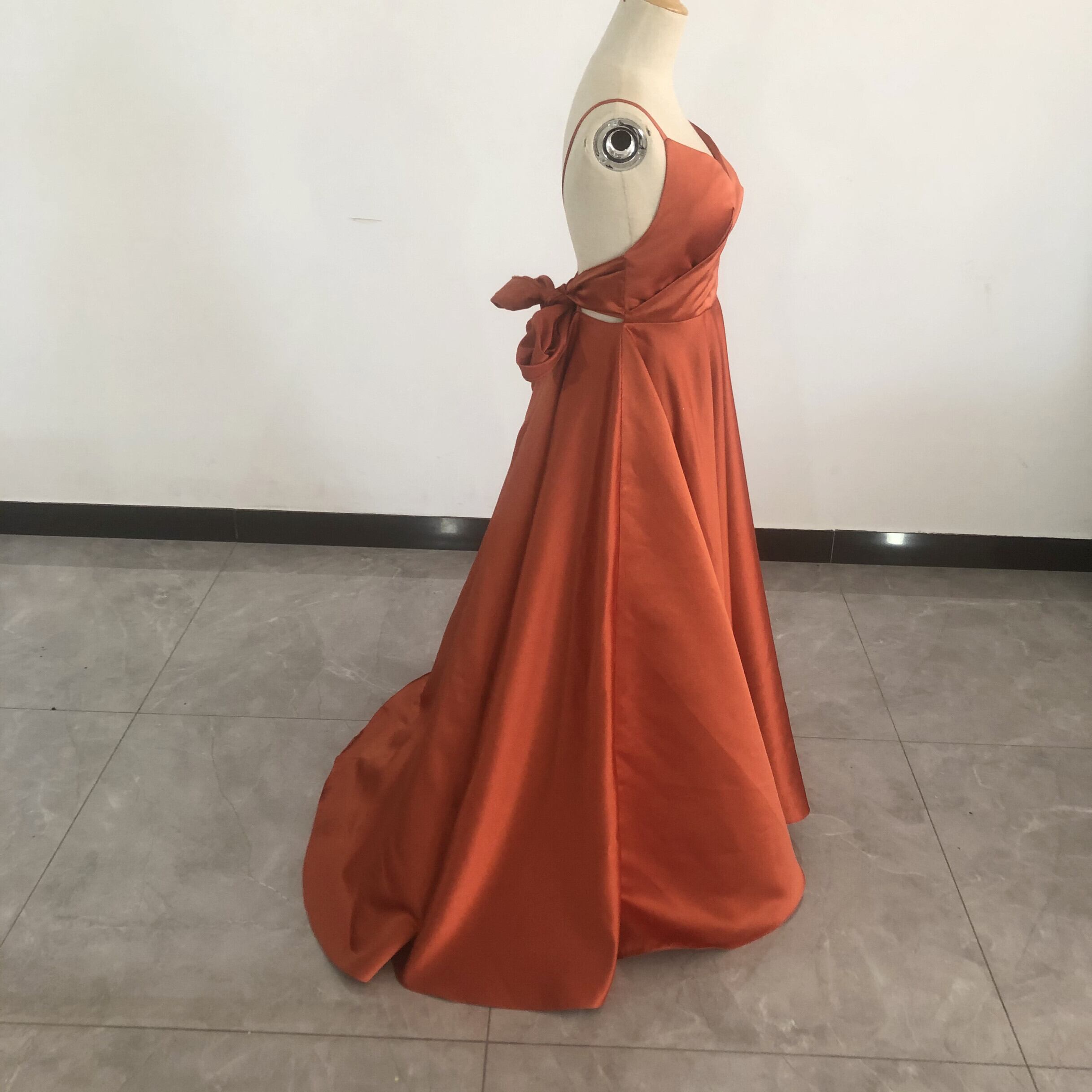 高品質!パーティードレス テラコッタ色 リボン 背中見せ 前撮り結婚式 2次会