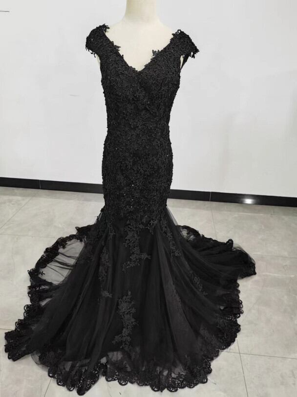 高品質! ウェディングドレス マーメイドライン 深Vネック レース 二次会