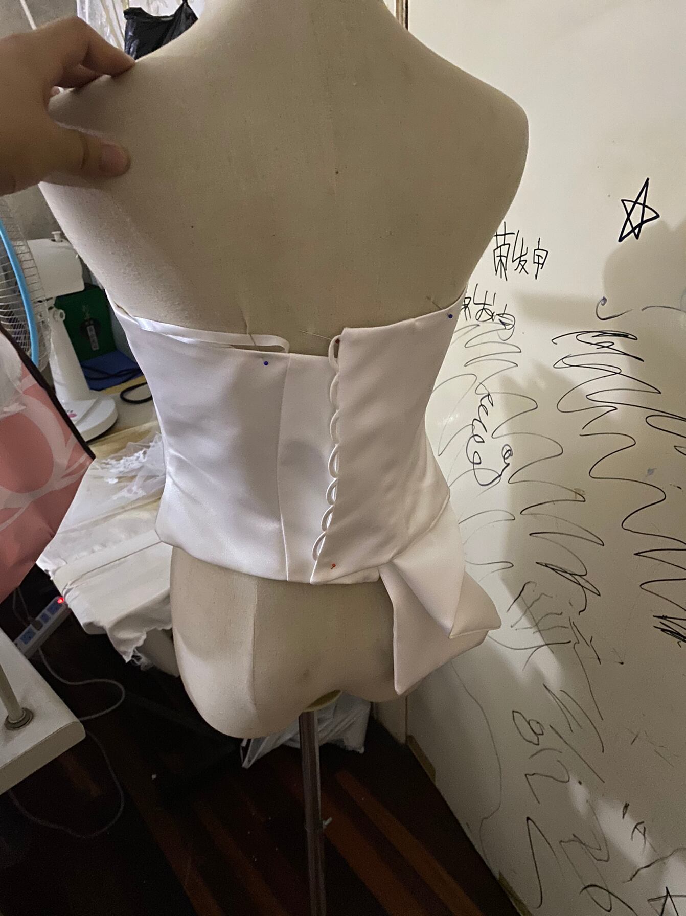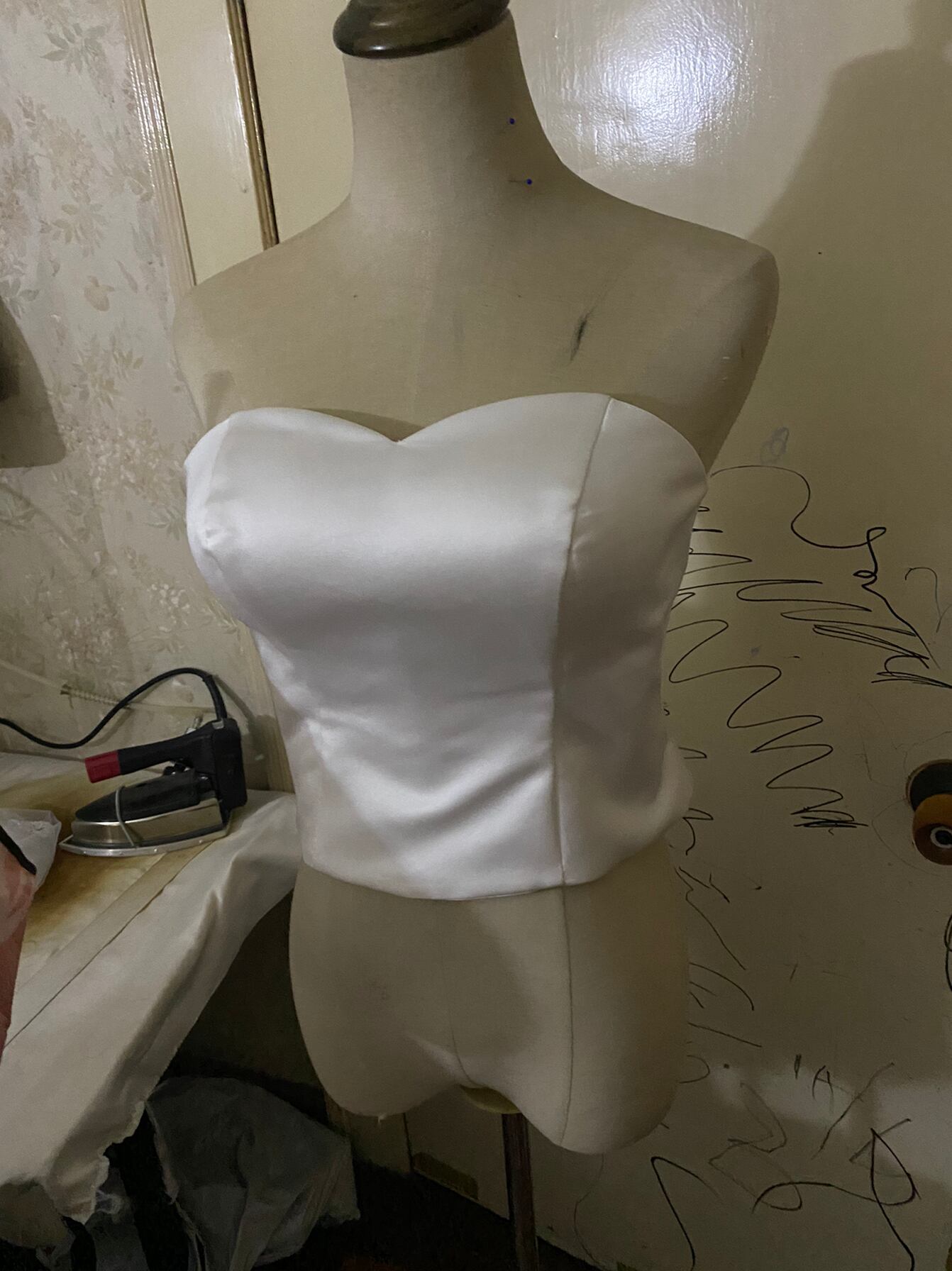 ホワイト 光沢サテン ベアトップ 編み上げ 可愛い トップス
