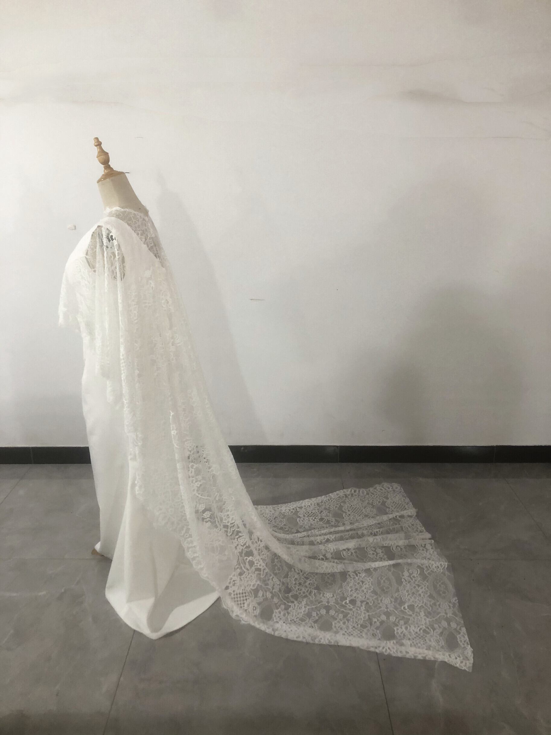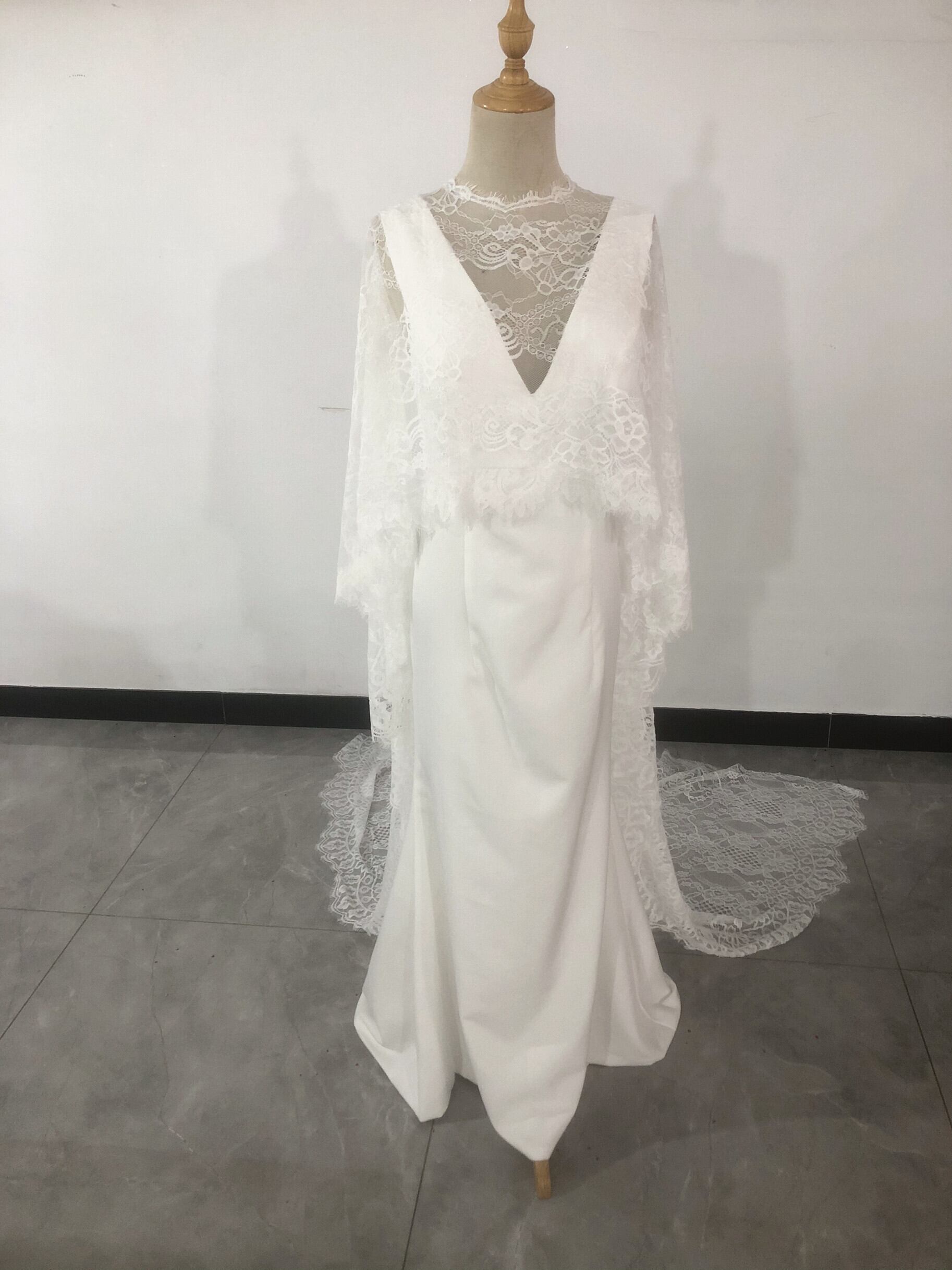 輝きな光彩を放つ パーティードレス ホワイト ウエディングドレス 背中見せ 前撮り+ケープ風ドレス 結婚式 2次会