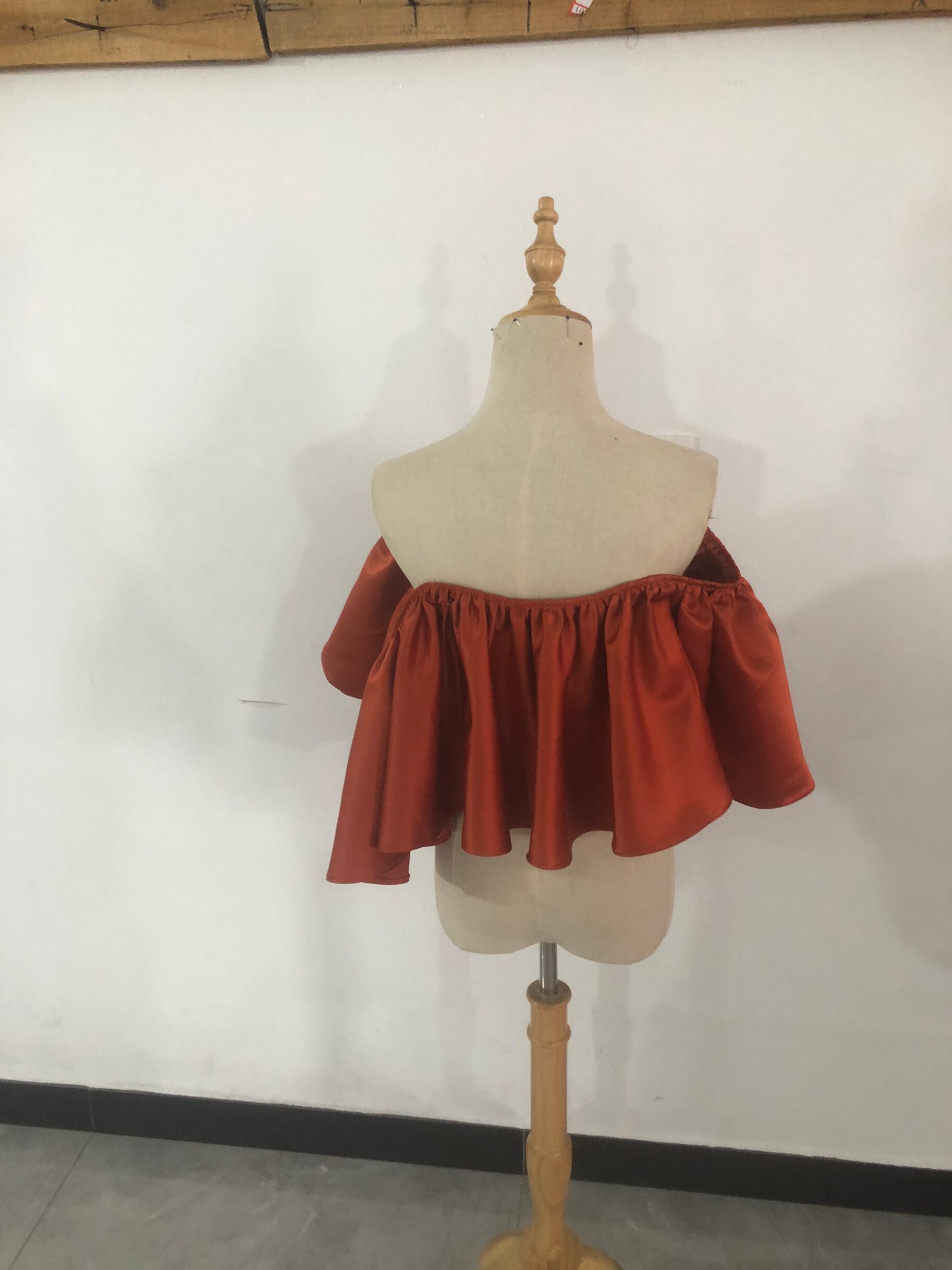 ウエディングドレス テラコッタ色 オフショルダー 色直し サイズ調整可能