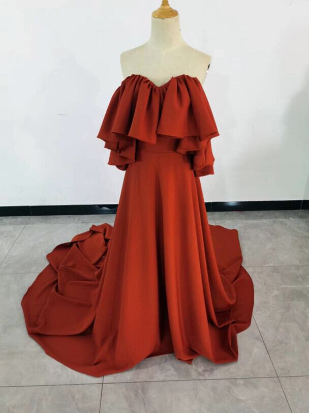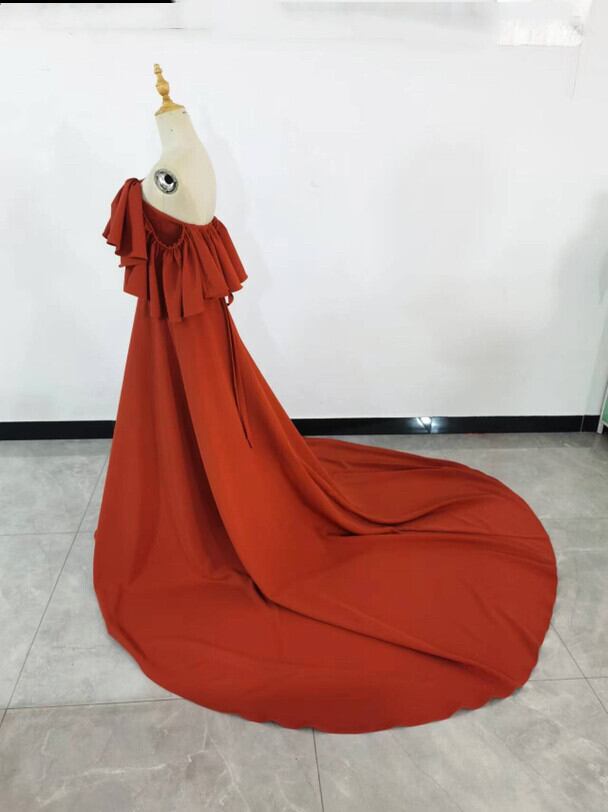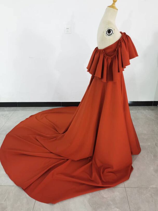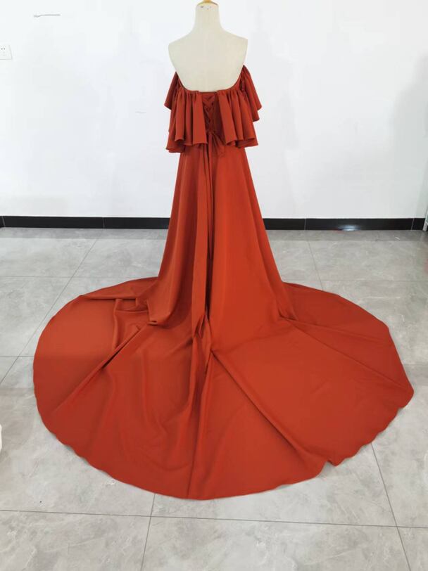 カラードレス テラコッタ色 オフショルダー ロングトレーン 前撮り2次会/挙式/花嫁