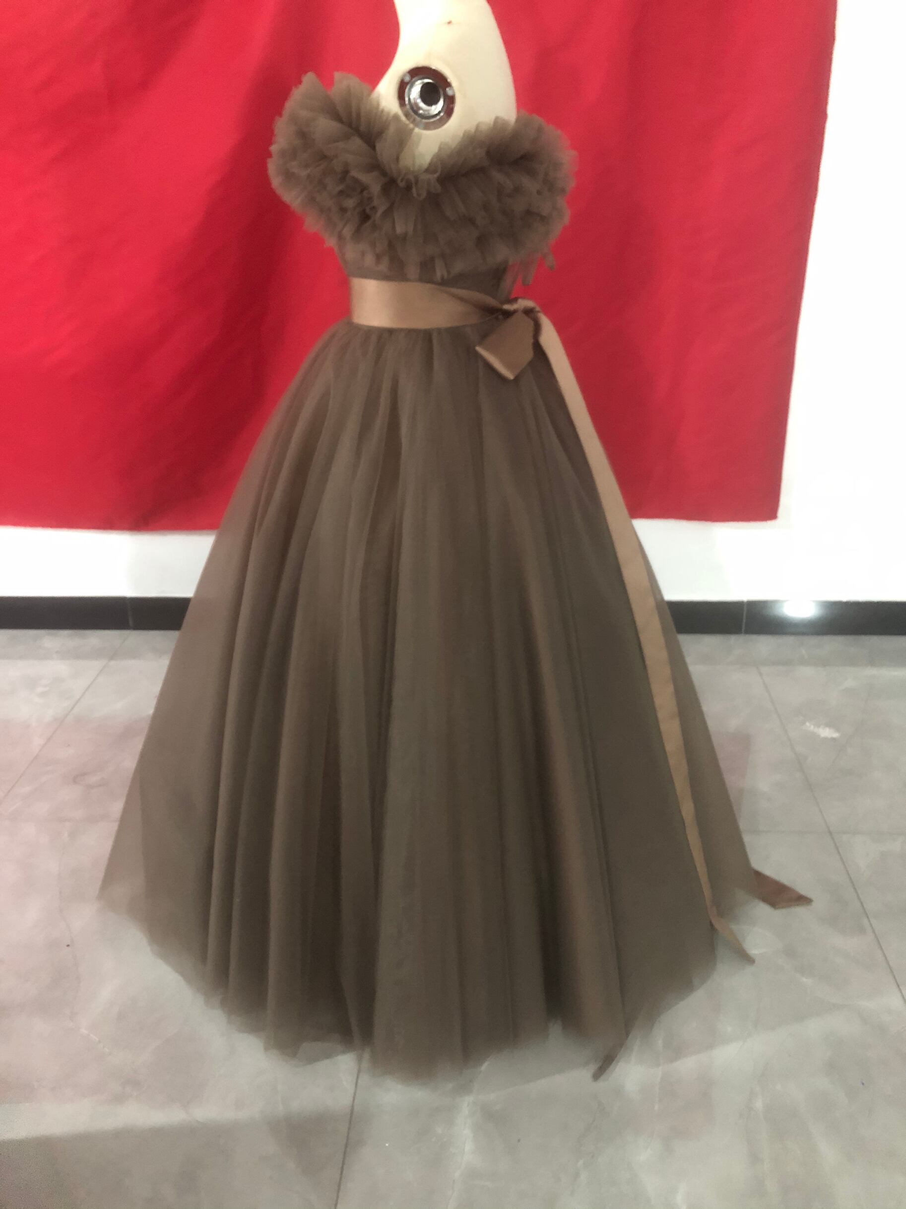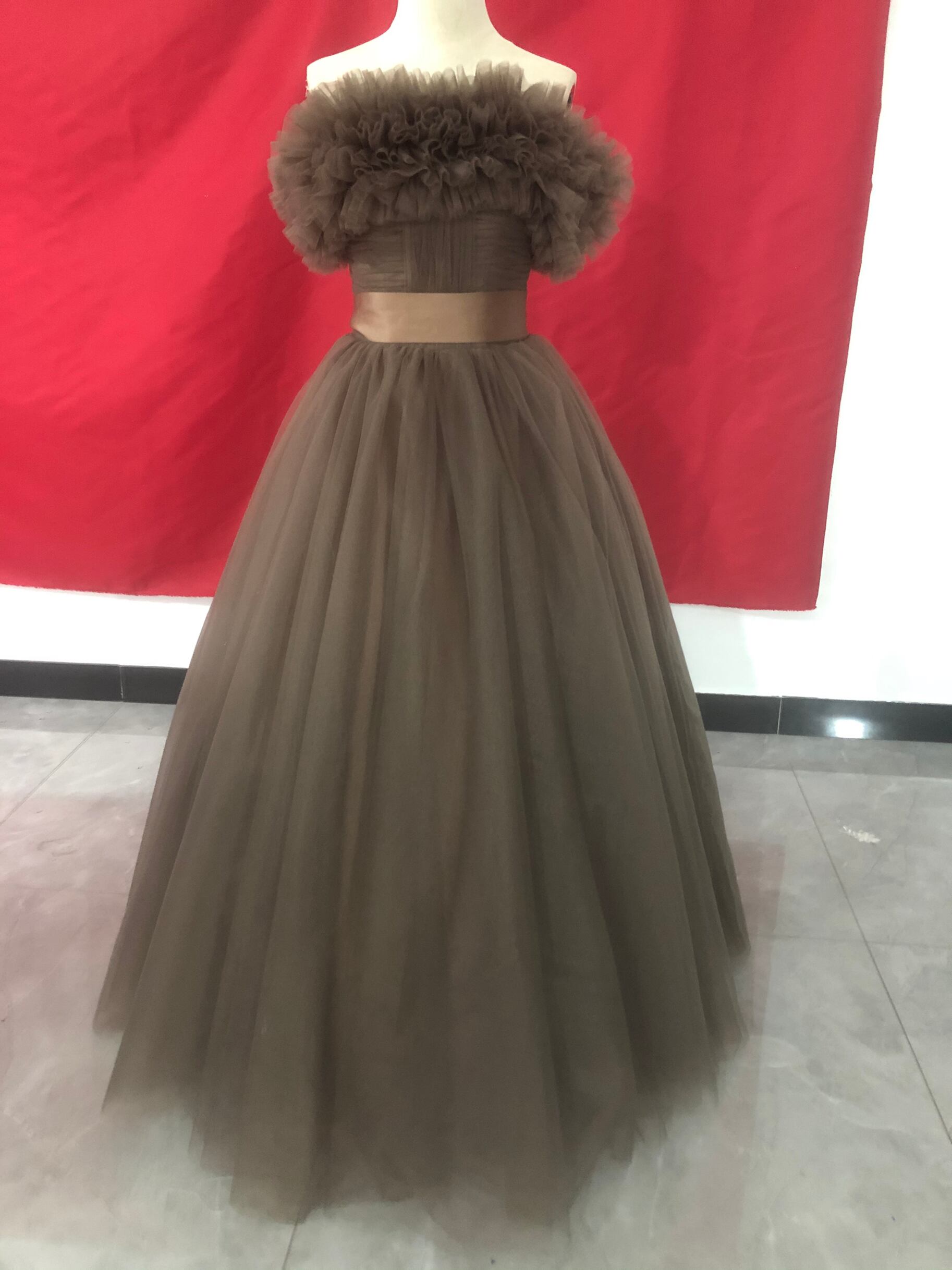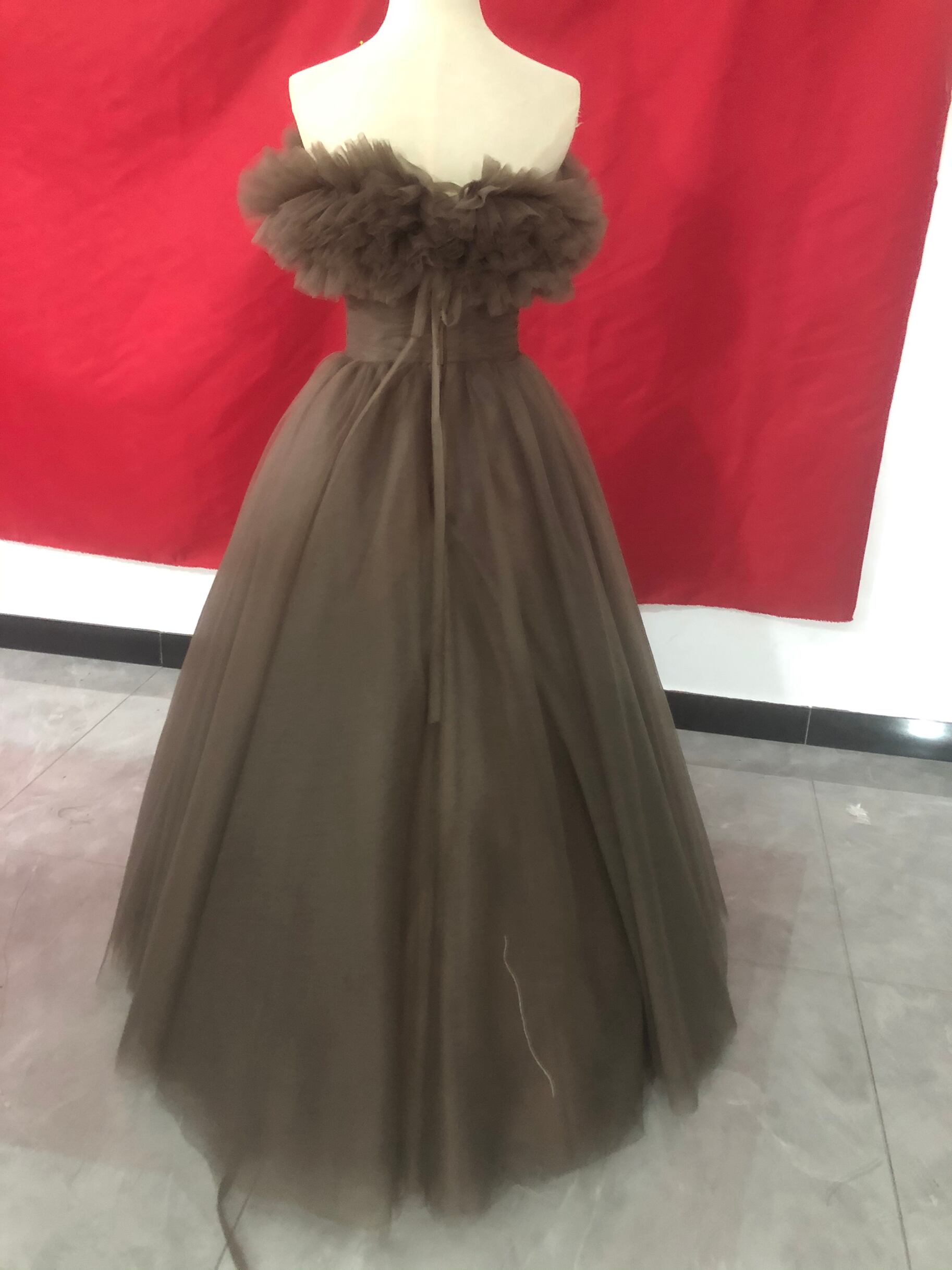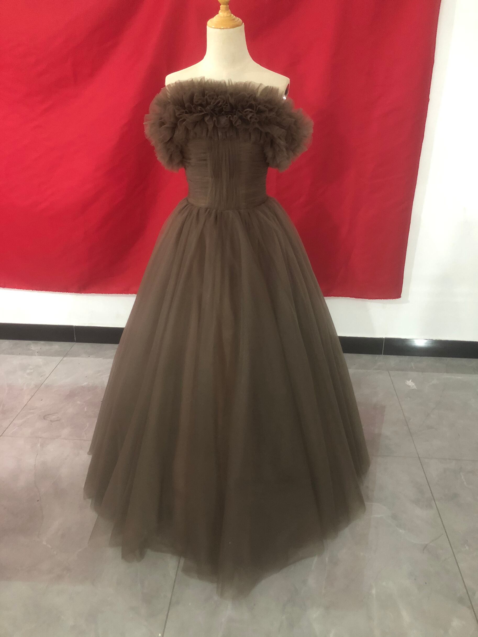 コピー:カラードレス コーヒーの色 2waysドレス 取り外しオフショルダー 結婚式/披露宴