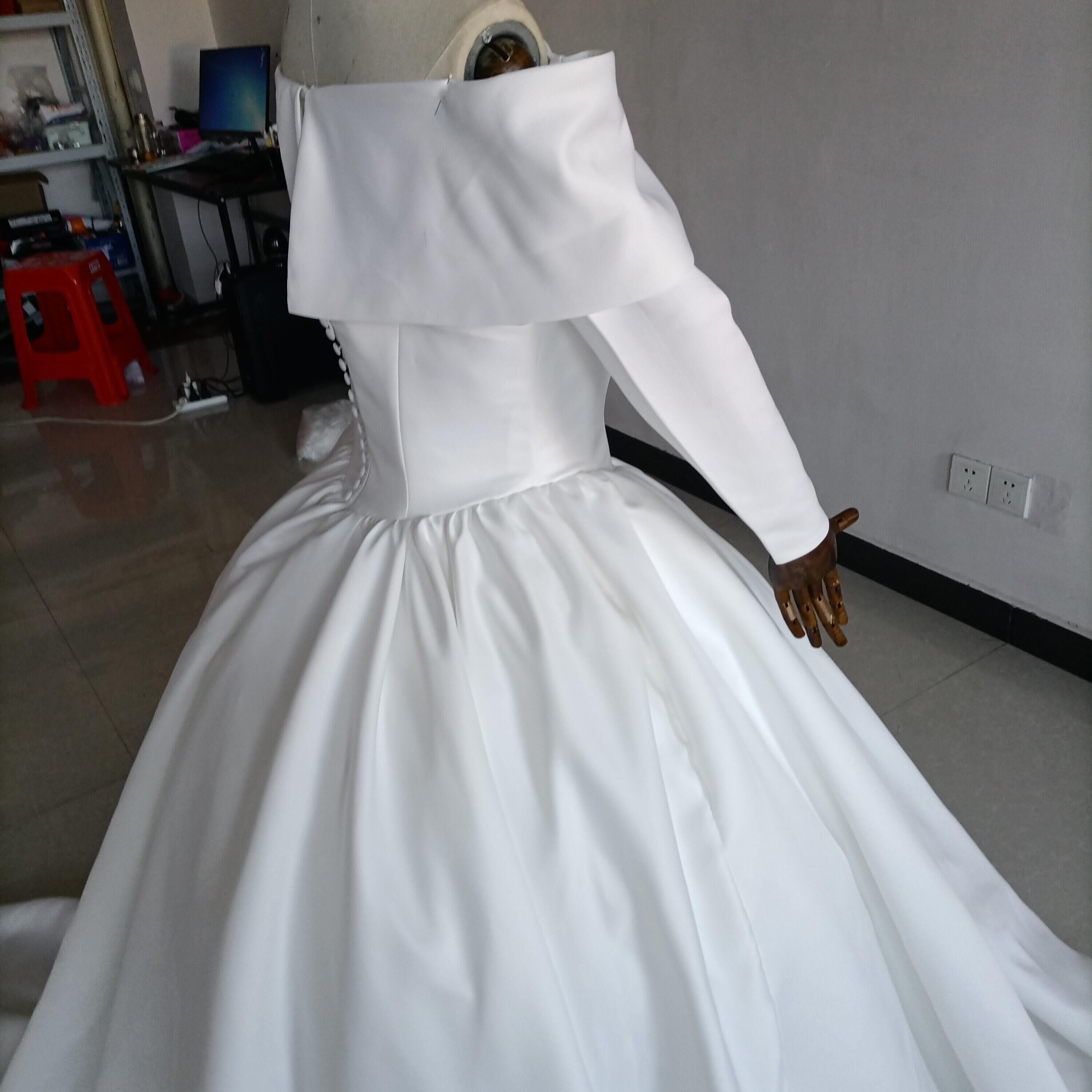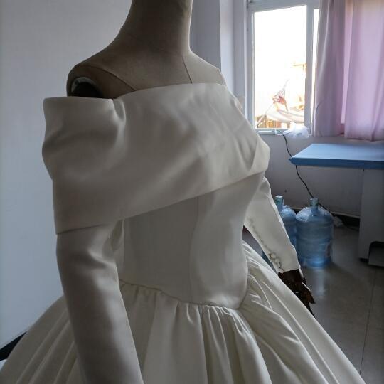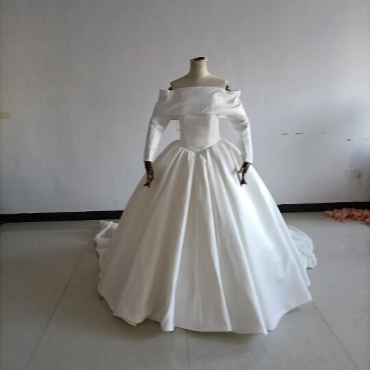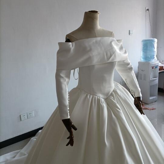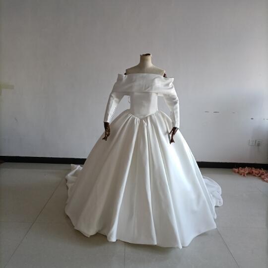 豪華! ウエディングドレス ホワイト オフショルダー 長袖  プリンセスライン 花嫁 /結婚式