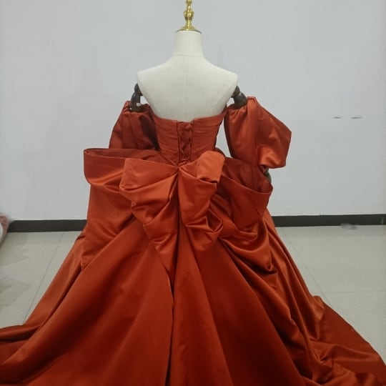 高品質!カラードレス パーティードレス テラコッタ Vバック 美しいバックリボン /結婚式/披露宴