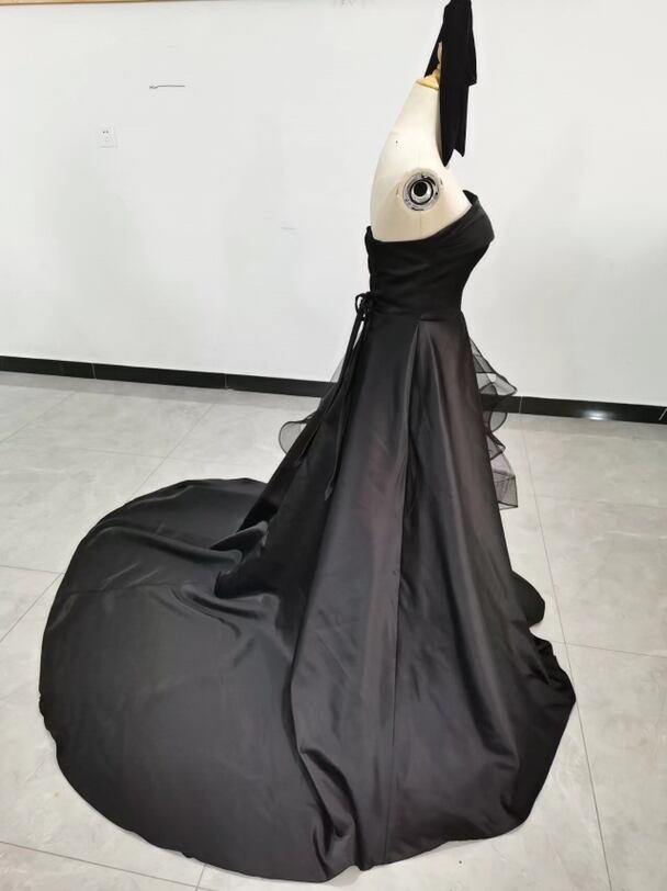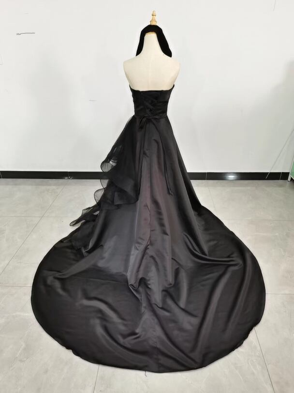 美品! イブニングドレス 黒 ベアトップ ミニトレーン/短トレーン エレガント 細見えシルエット