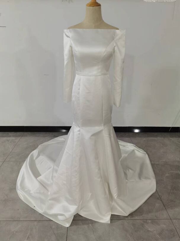 オフショルダー ホワイト パーティードレス 二次会 前撮り 挙式 パフスリーブ マット生地 ウエディングドレス 七分袖丈