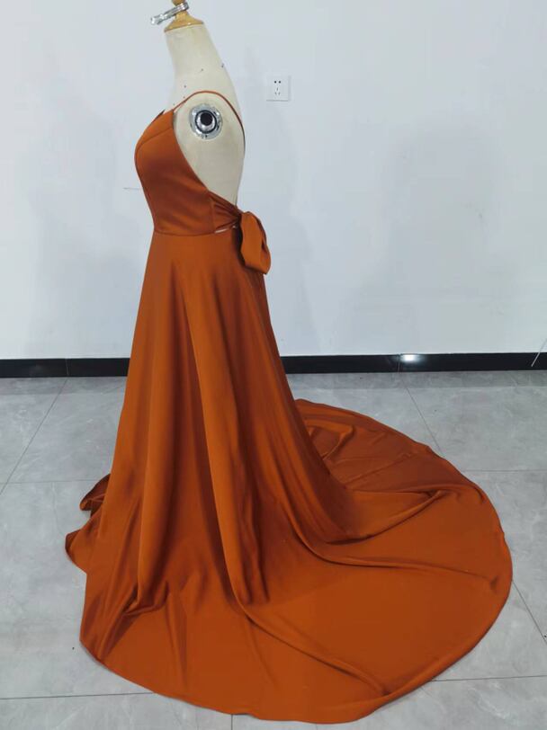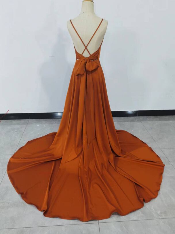 高品質!パーティードレス テラコッタ色 リボン 背中見せ 前撮り結婚式 2次会