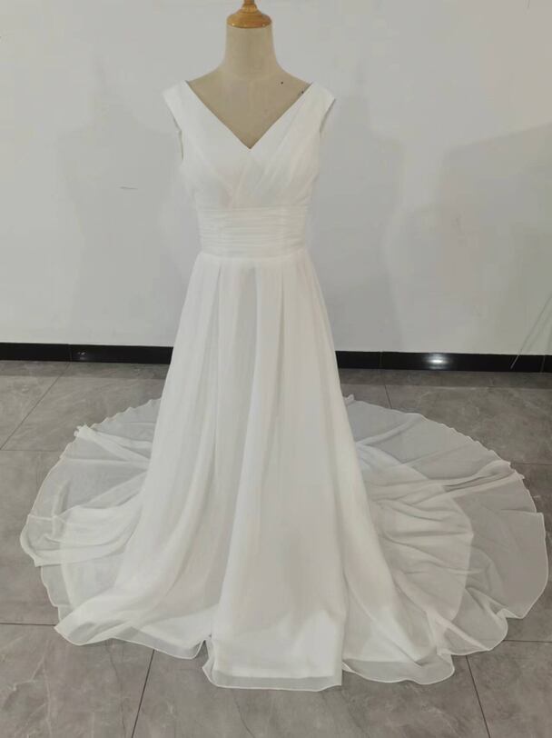 高品質! ウェディングドレス Vネック 編み上げ ロングトレーン プリンセスライン 結婚式/披露宴