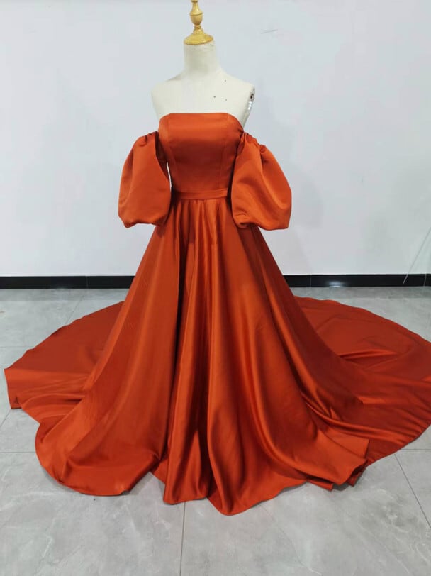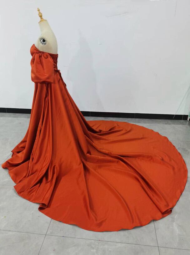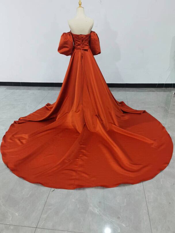 高品質!テラコッタ カラードレス 編み上げ 華やかなトレーン プリンセス /結婚式披露
