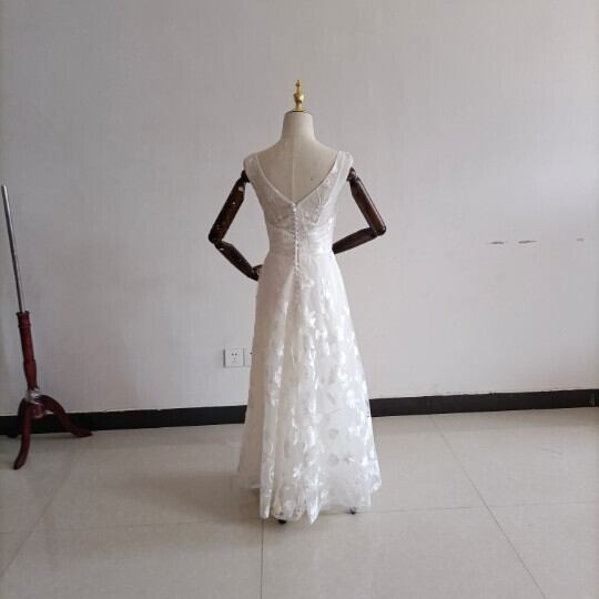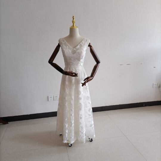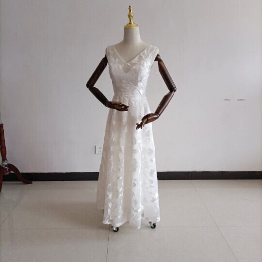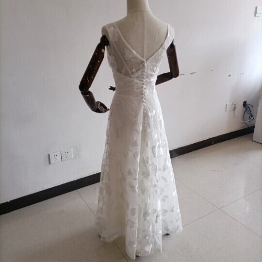 高品質! パーティードレス ホワイト 高級刺繍 くるみボタン 床付く 深Vネック 二次会