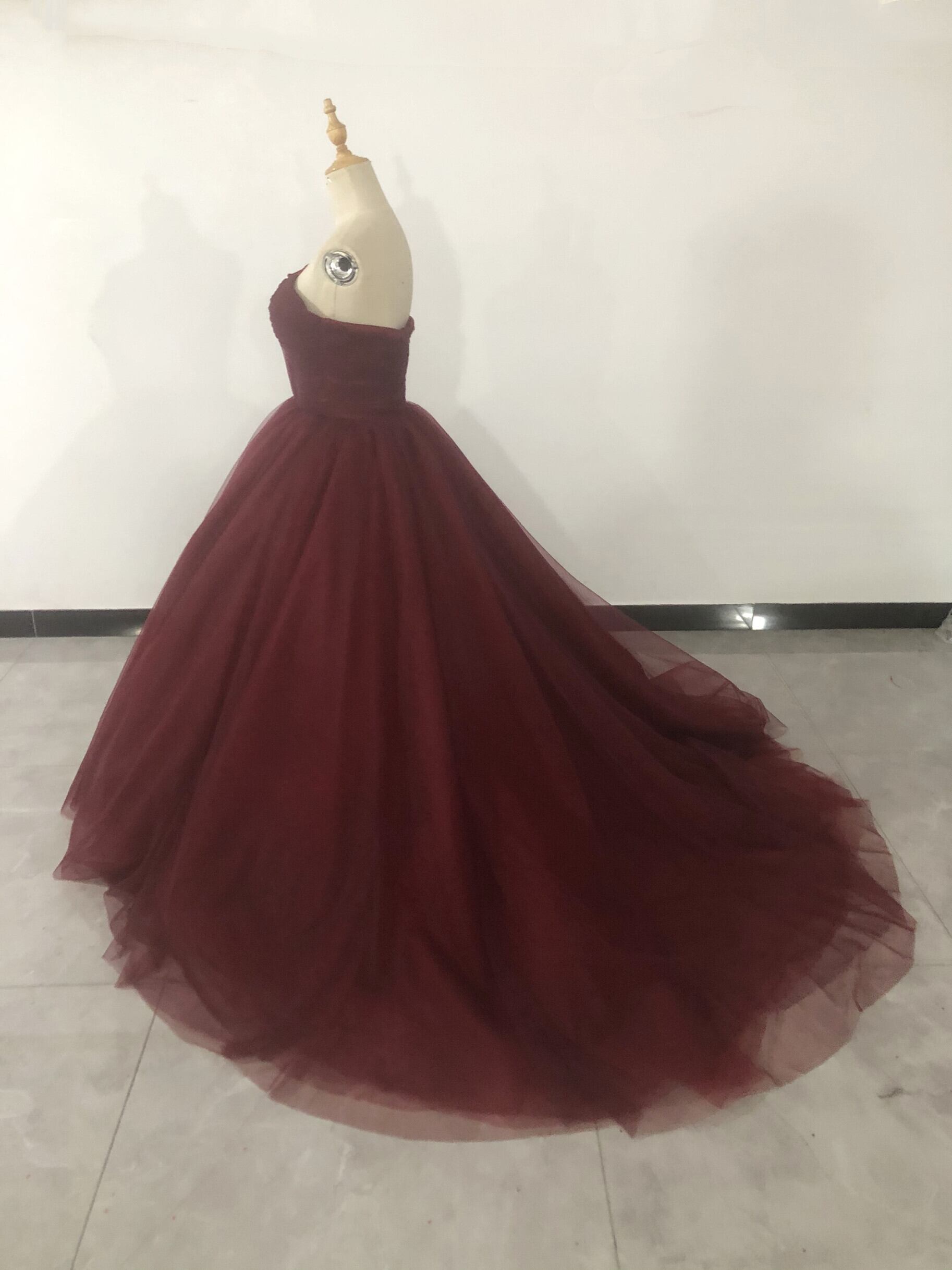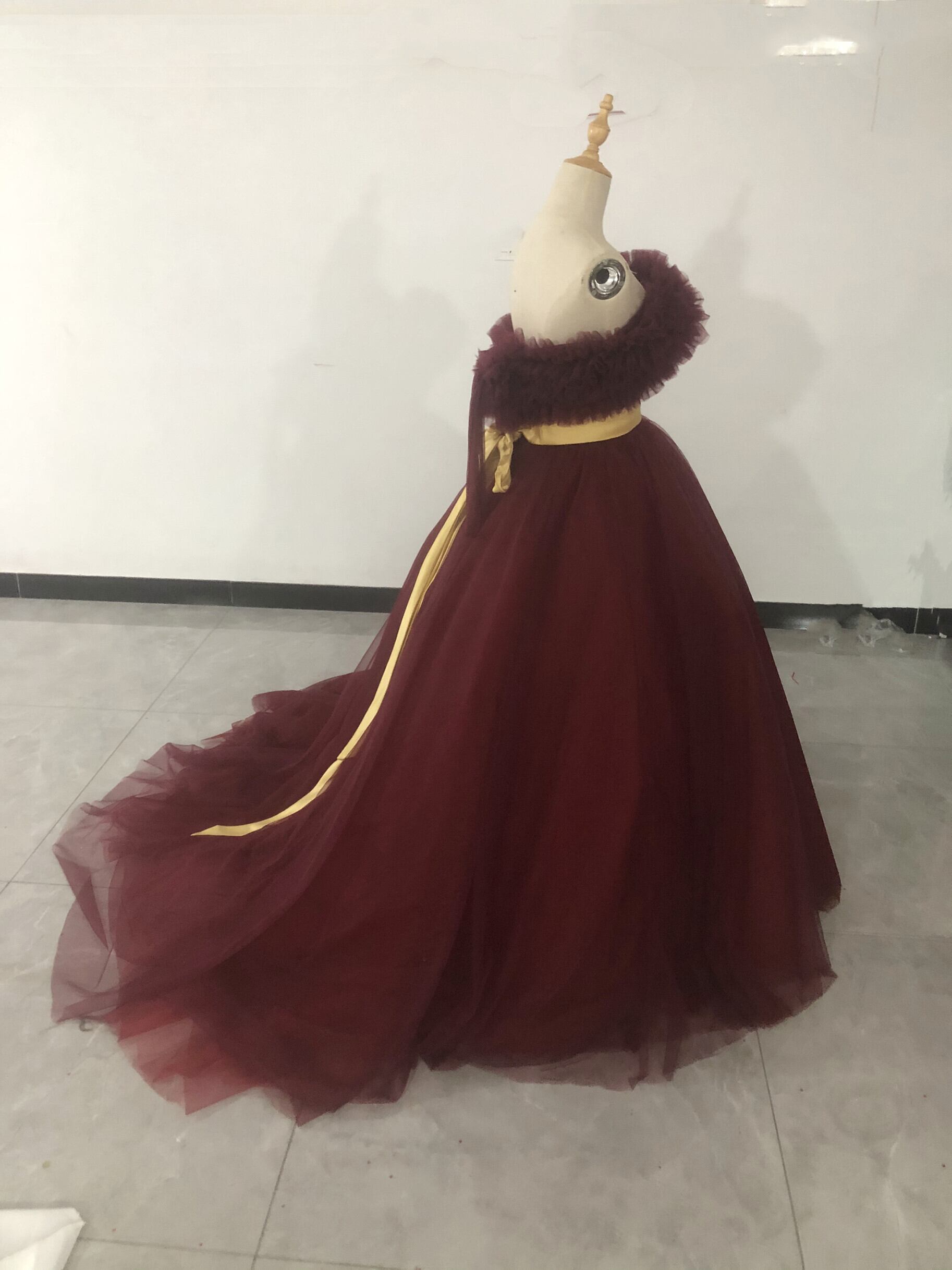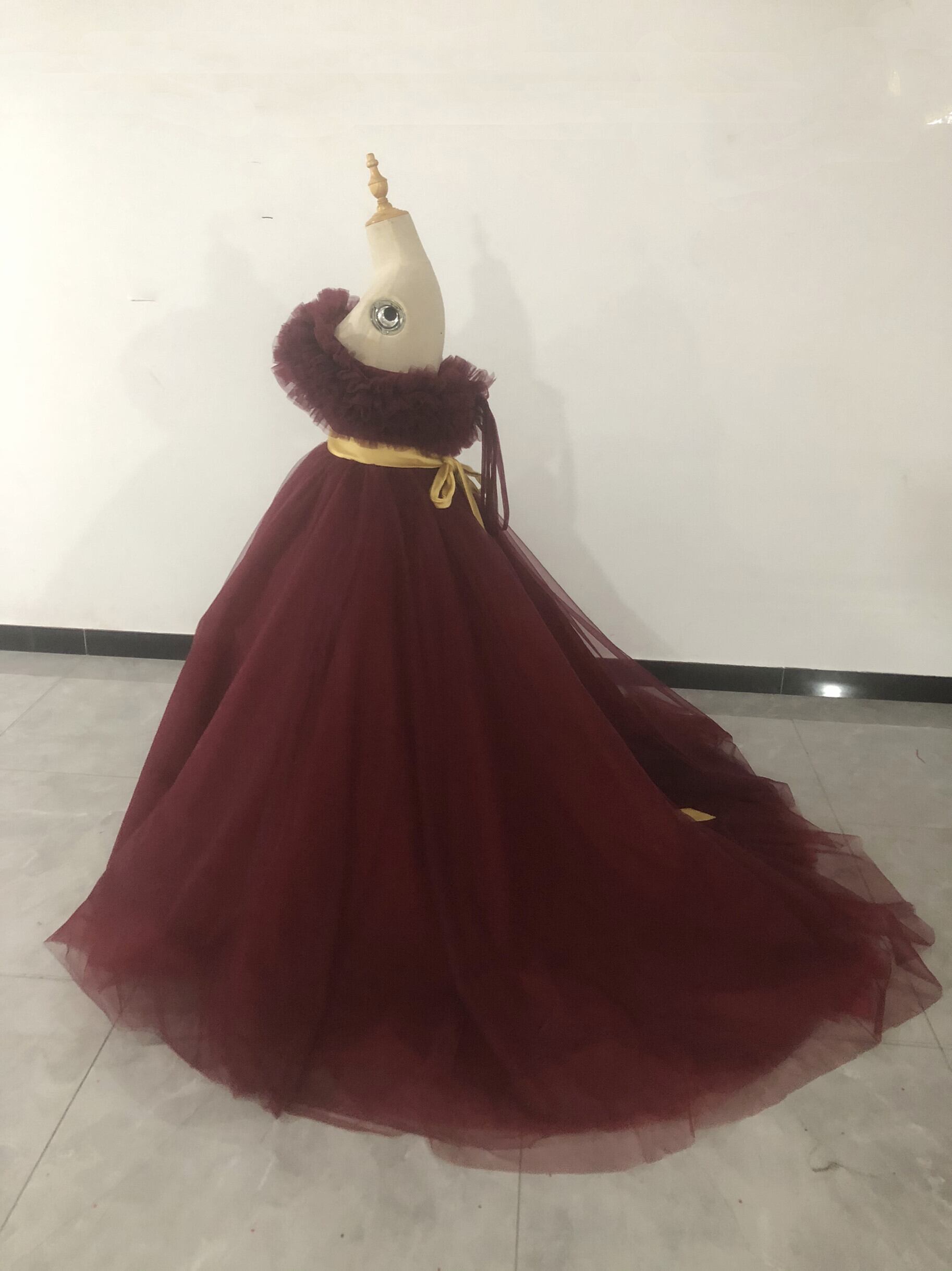 ワインレッド カラードレス オフショルダーの2WAYドレス ロングトレーン パーティードレス お色直し