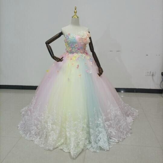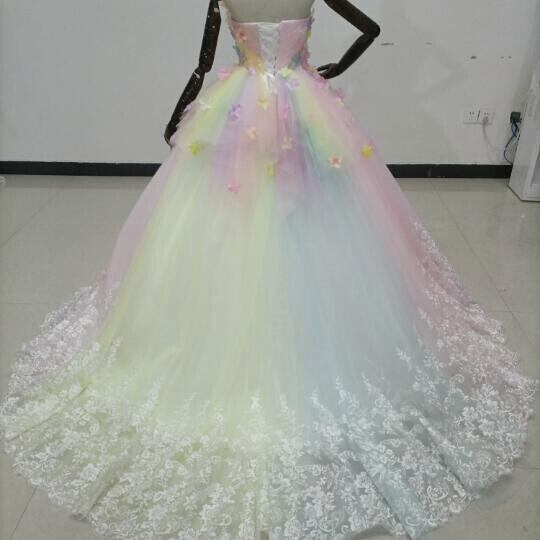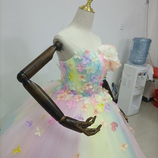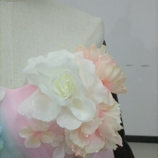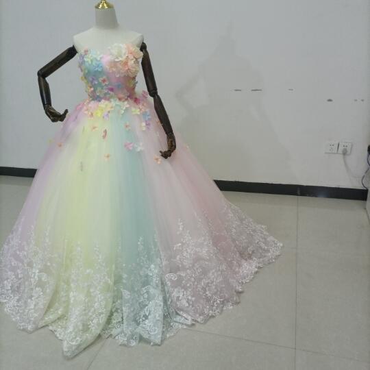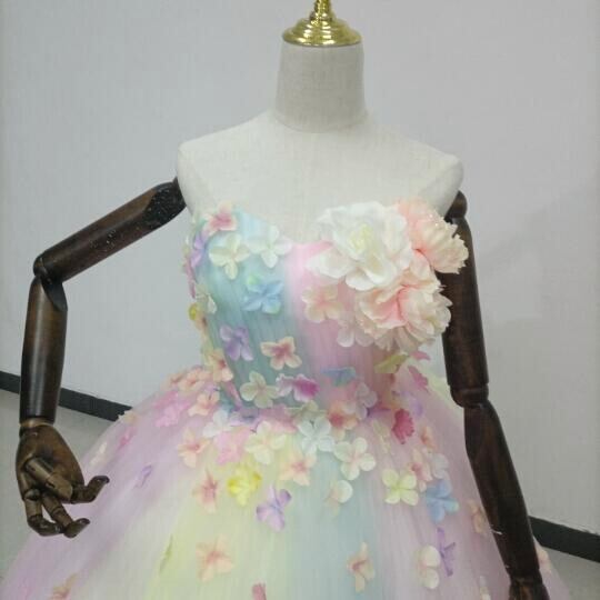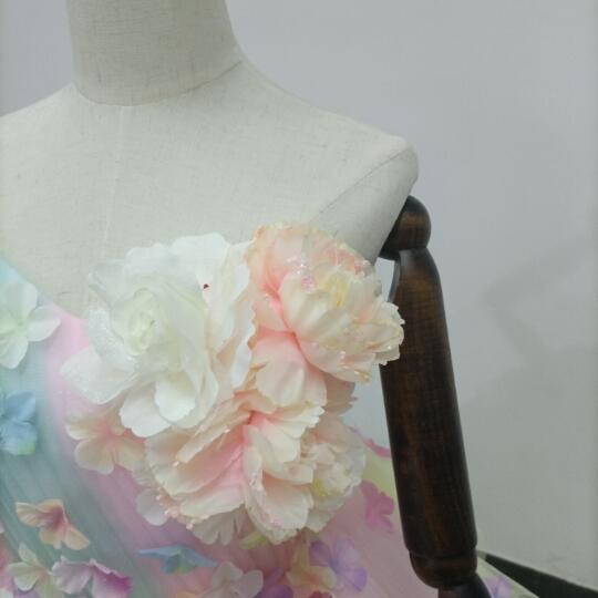 カラードレス レインボースカート 3D立体レース刺繍 花びら付き 花嫁 可愛い