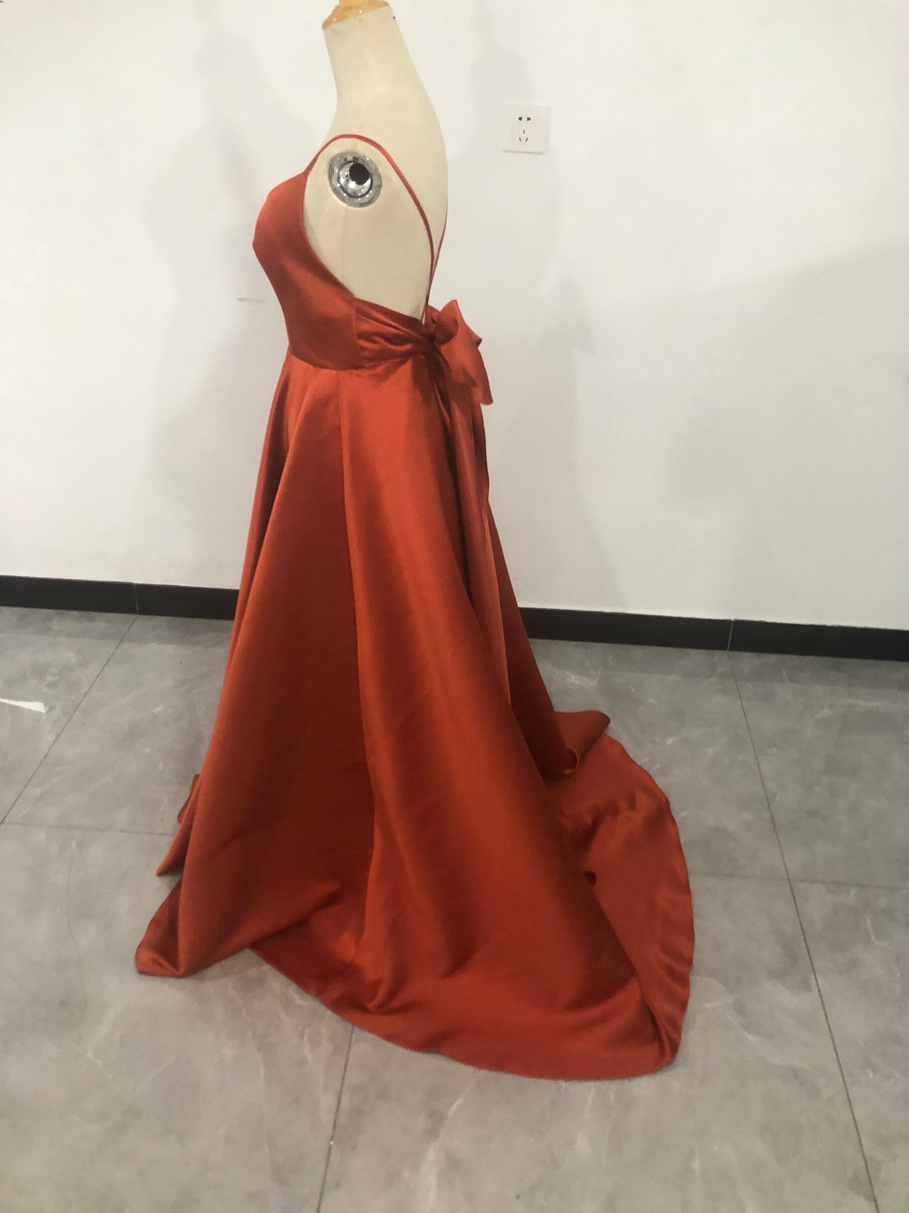高品質!パーティードレス テラコッタ色 リボン 背中見せ 前撮り結婚式 2次会