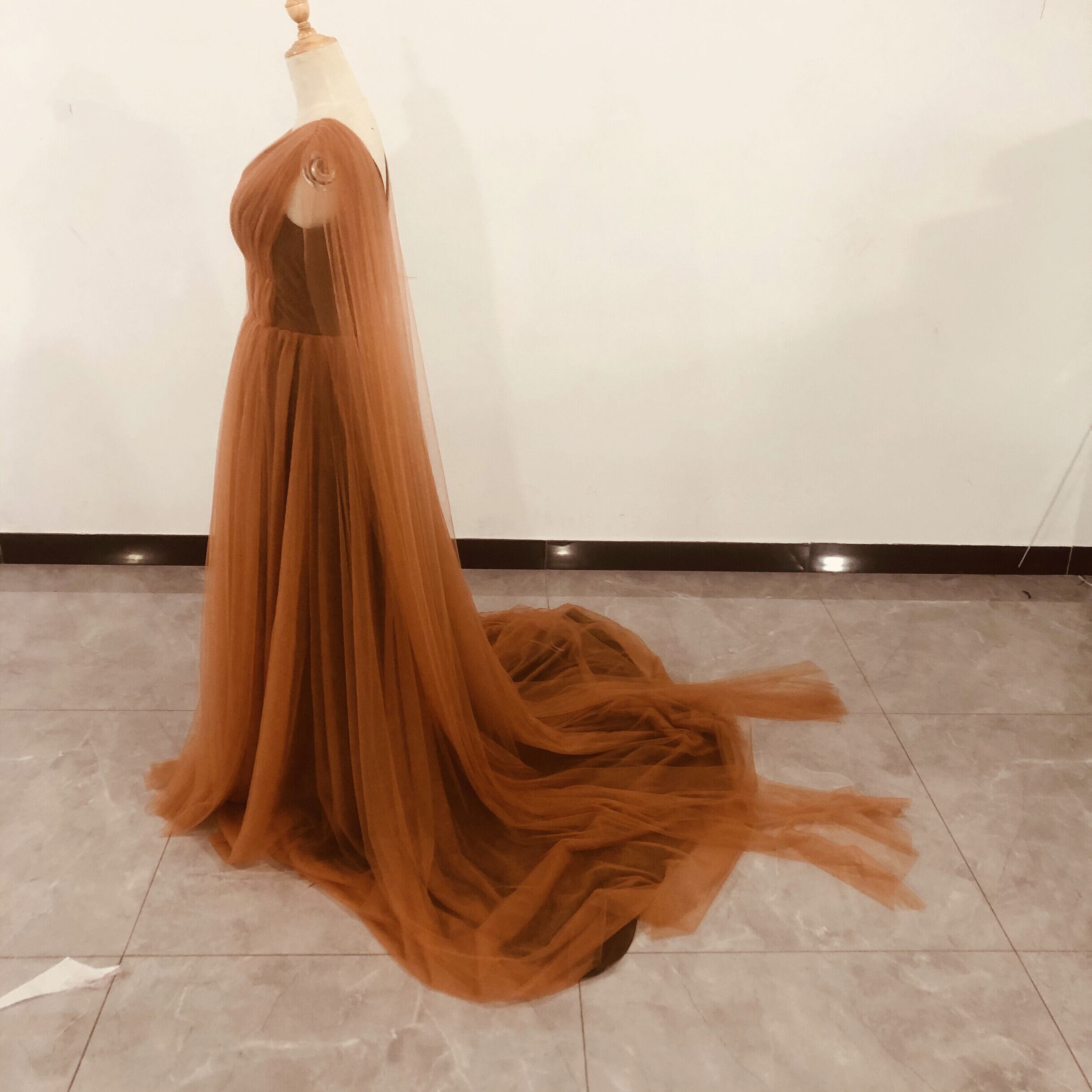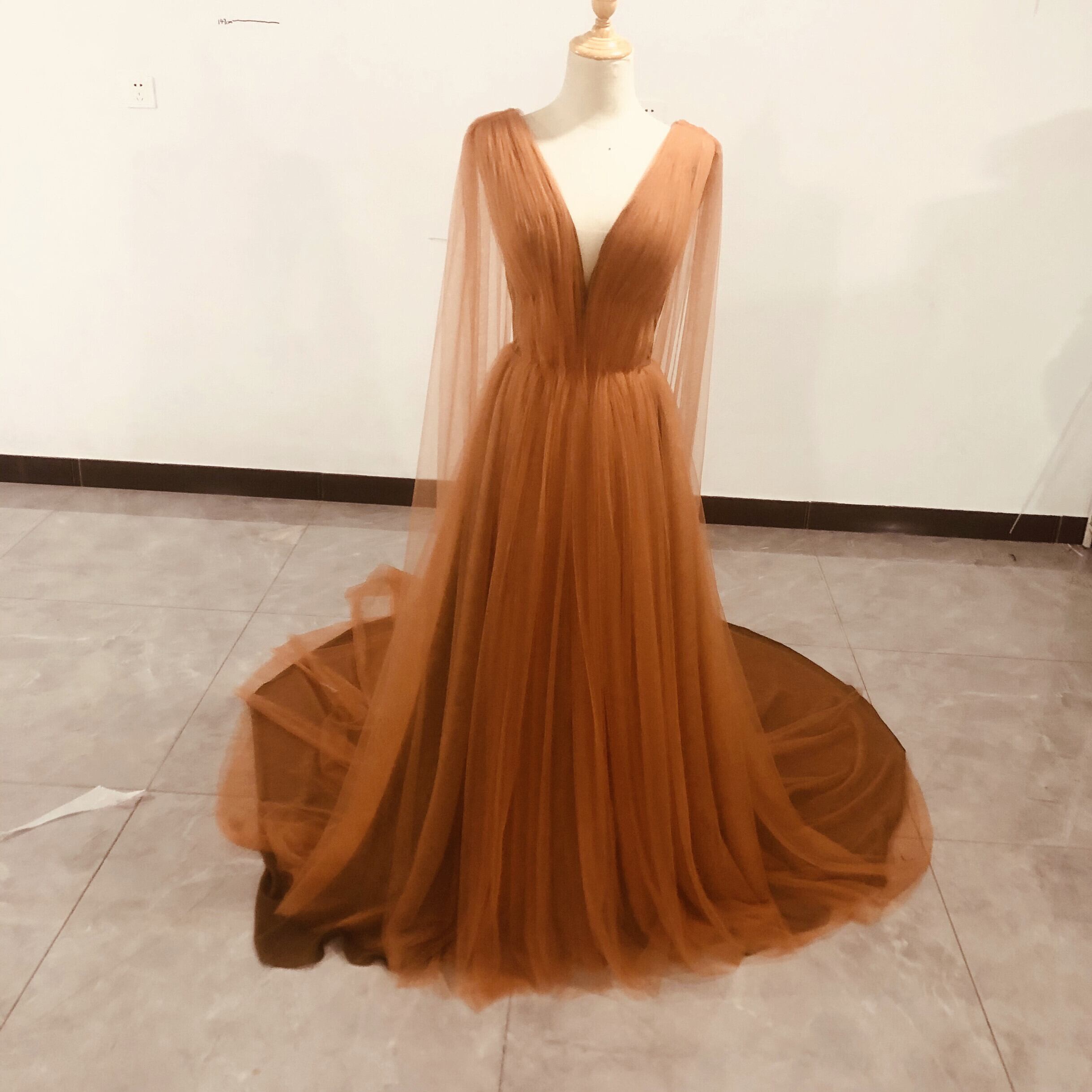 カラードレス テラコッタ色 Vネックドレス ソフトチュール 憧れのドレ